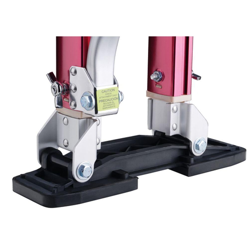 These stilts are perfect for drywall painting, electrical, drop ceilings, and many other applications. These are made of premium grade aluminum Alloy and are backed up with a full 1-year warranty. The exclusive wing bolt design offers flexibility and versatility-now you can adjust the height without tools.