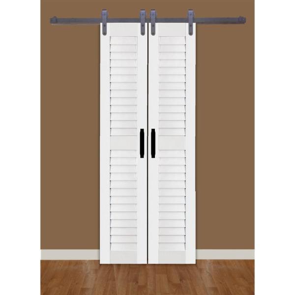 36 in. x 84 in. Louver/Louver White PVC Composite Split Barn Door