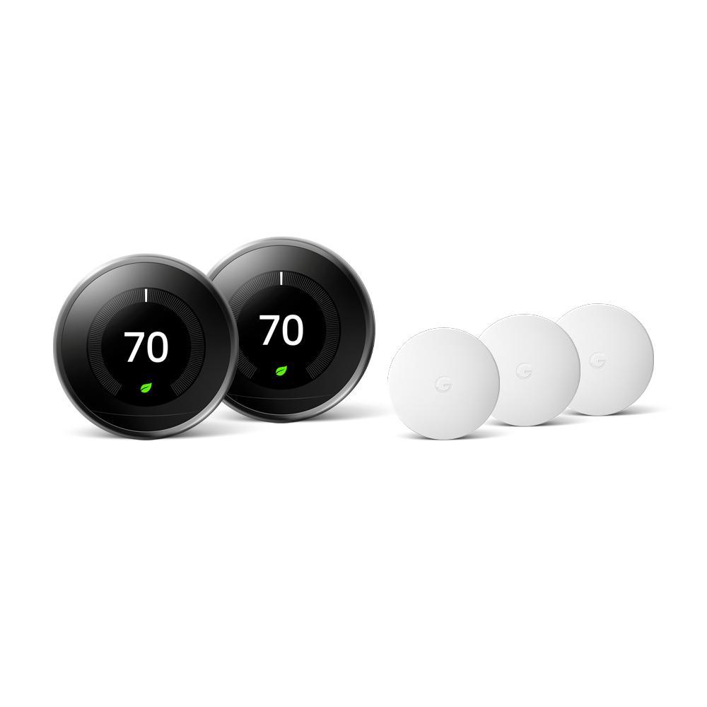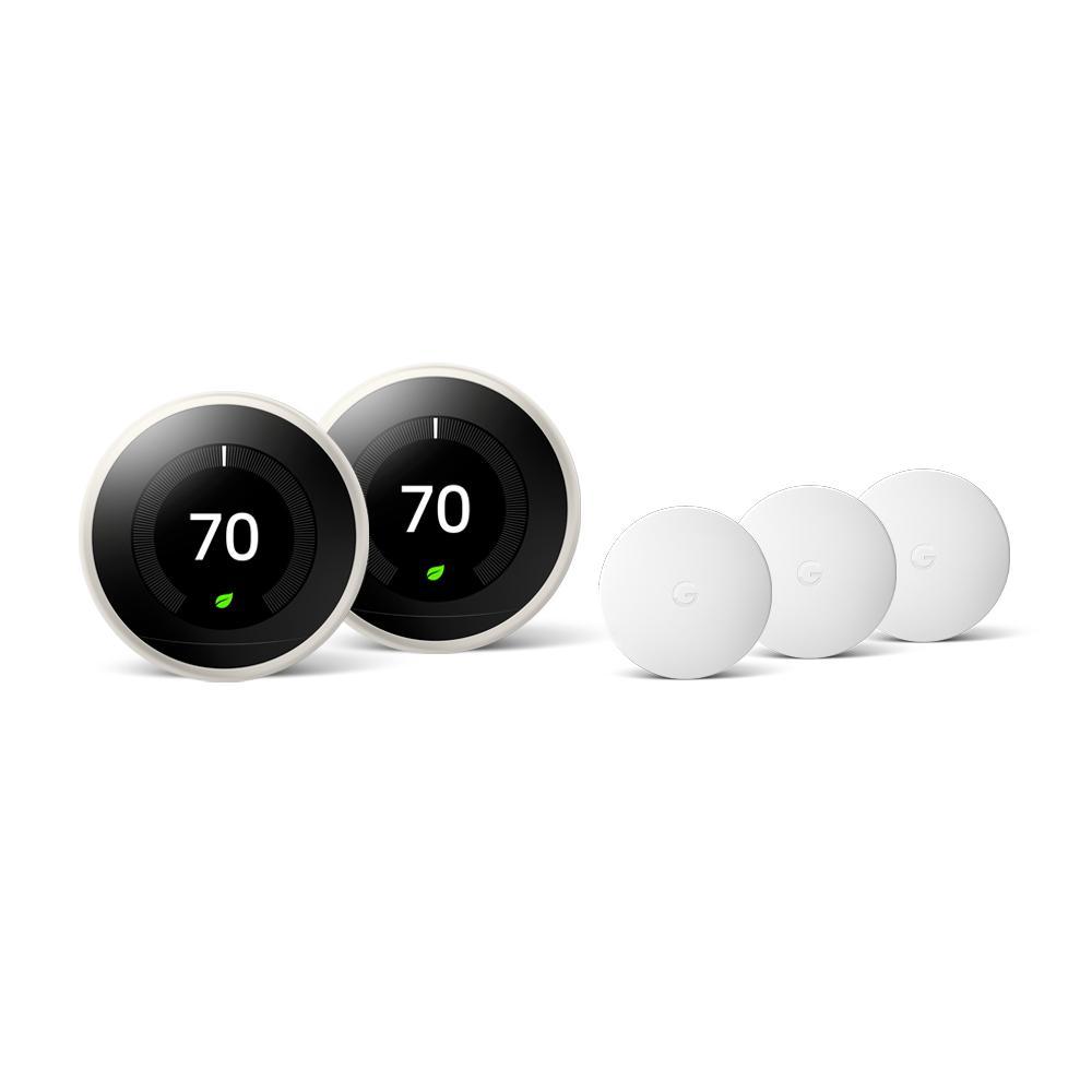 This Nest Learning Thermostat picks up on your favorite temperature settings and adjusts throughout the day. You can also control it through your smart devices using Wi-Fi. Redesigned with a sleek look and sharper display, this smart thermostat enables customizable temperatures from room to room. You can discreetly place it on a wall or shelf. The ENERGY STAR-certified thermostat can save you between 10 and 20 percent on heating and 15 percent on cooling bills, paying for itself in less than two years.