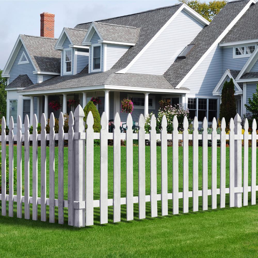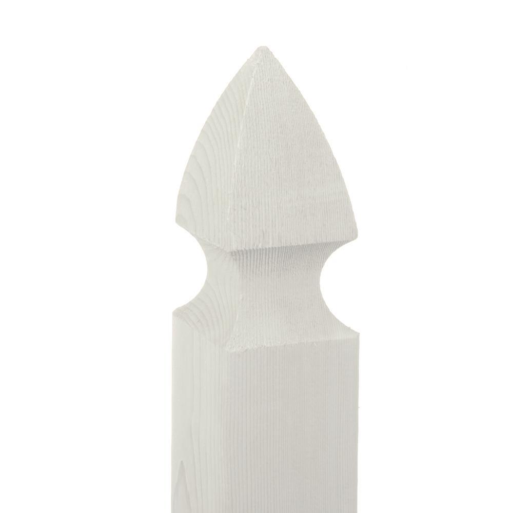 Add personality to your fence project with our 4 in. x 4 in. - 5 ft. Cedar French Gothic Fence Posts. These posts come already primed white to save you time. They are made with incense cedar, which is naturally resistant to rot and decay. The posts feature a French Gothic top, so there's no need to add a finial or post cap. Use these posts to build fence panels 42 in. tall or shorter. To build a fence panel, you'll also need fence pickets and backer rails, sold separately.