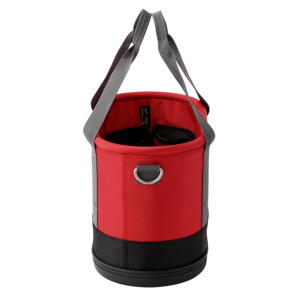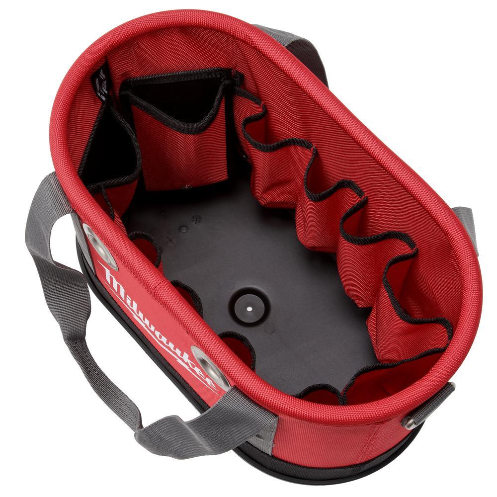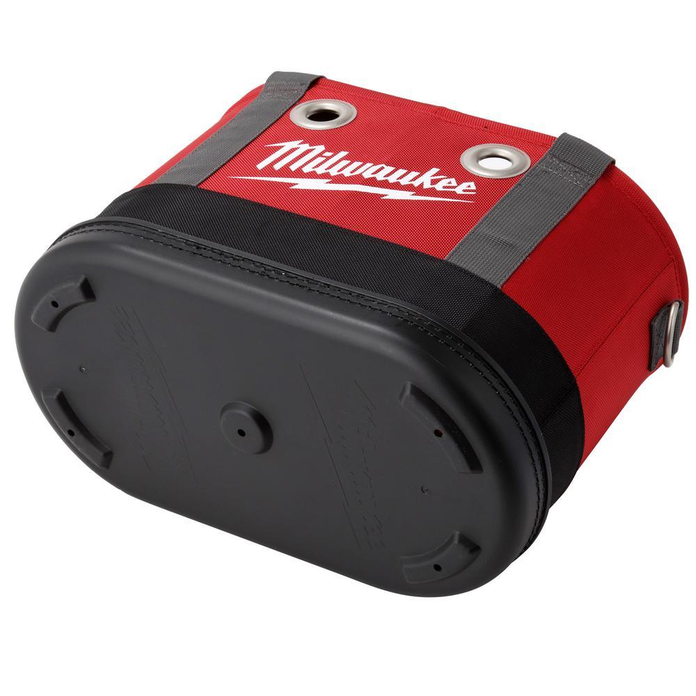 The Milwaukee Aerial Oval Bag provides users up to 5x more durability and a solution for storing their utility tools on the jobsite. The aerial oval bag is constructed with 1680D ballistic material and 2 nickel plated brass eyelets for ultimate durability. Furthermore, the bag features an impact resistant base and weep holes that let water out after extended jobsite use. Lastly, there are 14 pockets including 2 puncture resistant knife pockets for organization.