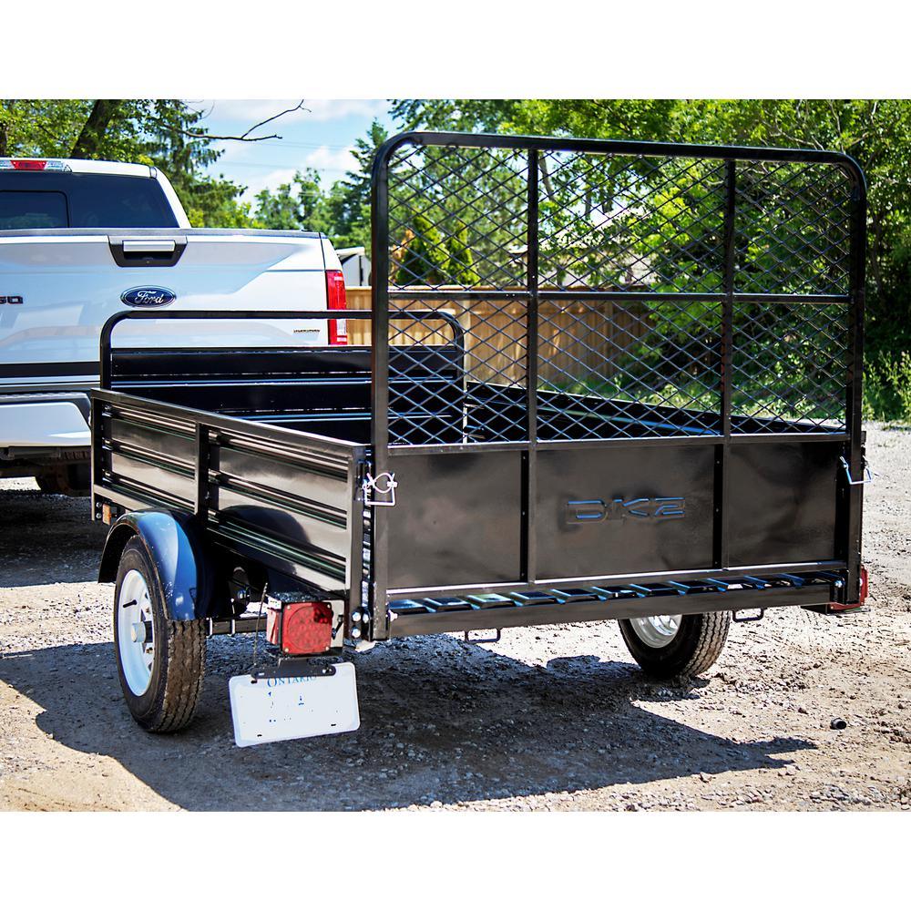 The DK2 MMT5X7 with Drive up gate is a single axle multi-utility trailer and one of the most versatile trailers on the market. Sitting on a solid square tube cambered axle with 12 in. 6-ply bias highway rated tires and a load capacity of 1,639 lbs. When the front and back load-bearing gates are down, the trailer bed extends to nearly 11.58 ft. Another great feature is the tilt/dump capability that makes it easy to load or unload heavy items. Fabricated from 100% steel, all of the components are reinforced, adjustable, removable and/or interchangeable.
