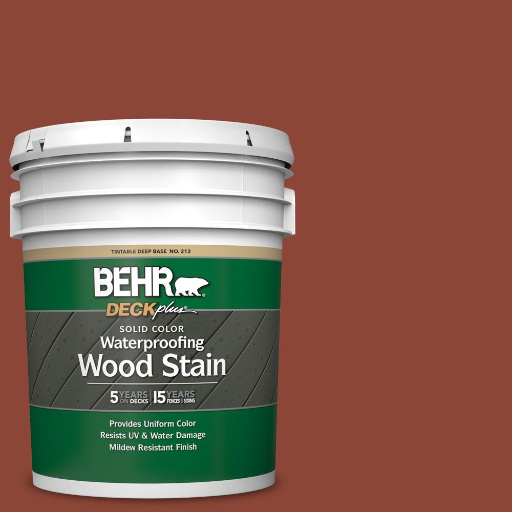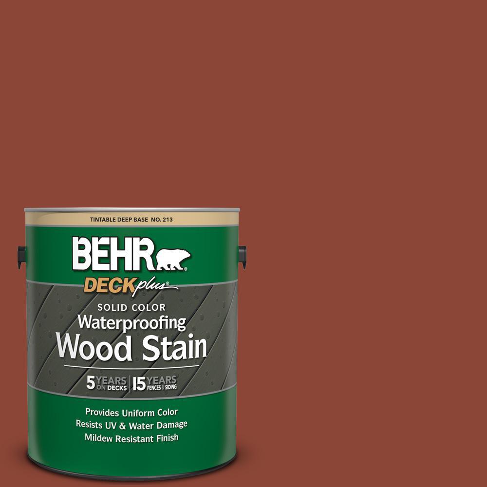 The BEHR DECKplus Solid Color Waterproofing Wood Stain is ideal for protecting exterior wood surfaces. The 100% acrylic formula provides exceptional adhesion and durability. It resists mildew growth to maintain a pristine appearance.