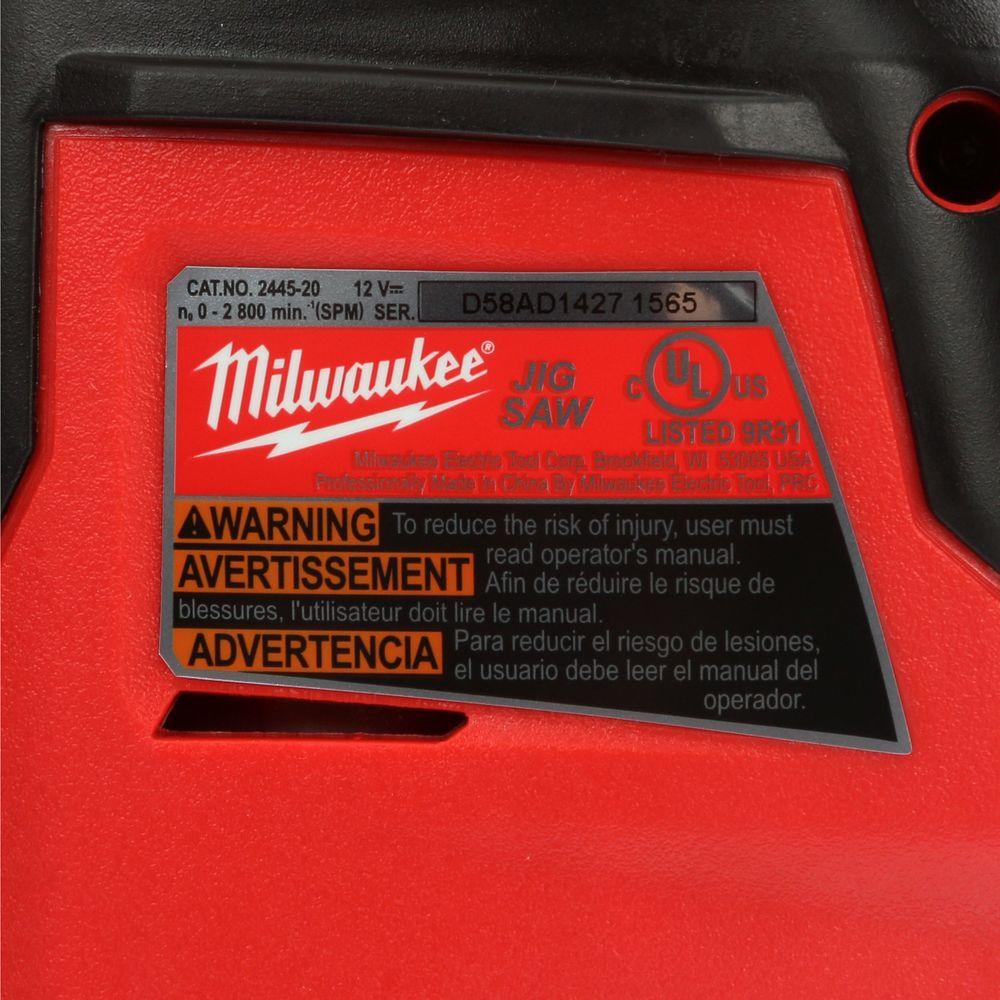 Compact and lightweight, the Milwaukee M12 12-Volt Lithium-Ion Cordless Compact Jig Saw delivers superior cutting power suitable for a wide range of trade applications. Powered by the M12 REDLITHIUM battery system, the tool is ideal for making quick cuts in wood, metal, wall tile or plastics without the hassle of a cord. The hybrid grip handle design combines the best features from both top handle and barrel grip jig saws to provide superior cut control during curved cutting applications. A 3/4 in. stroke length and 0-2800 SPM variable speed trigger deliver fast and accurate cuts and with the QUIK-LOK T-Shank blade clamp and tool-free 450 bevel capability, tool adjustments are quick and easy. Suitable for professional use or for DIY projects, this jig saw is durably made for long-lasting and reliable use. Includes A M12 XC Extended Capacity Battery Pack 4.0 Ah (48-11-2440).