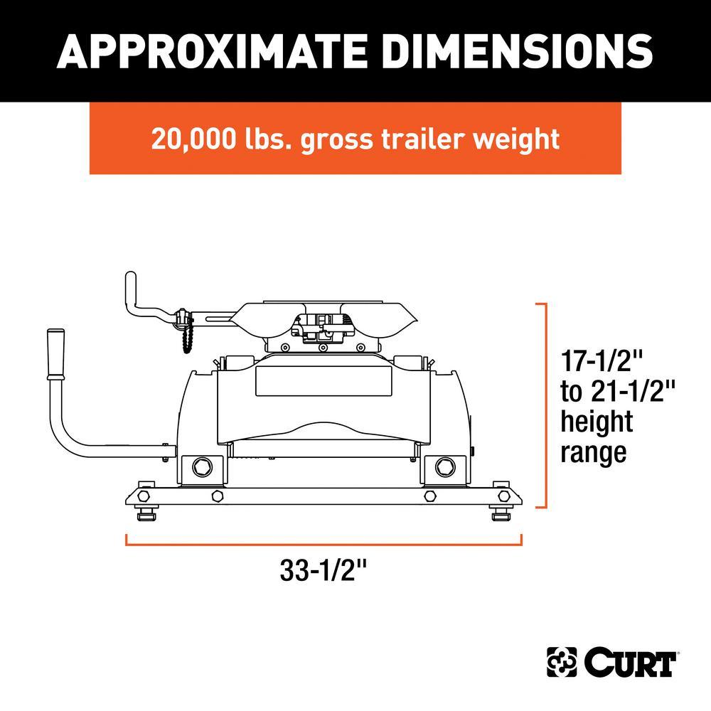 The CURT Q20 5th wheel hitch is designed to offer the quietest 5th wheel towing possible, featuring a spherical axial bearing built into the hitch head that allows it to tilt with the 5th wheel trailer in any direction necessary. The Q20 also features dual-locking jaws for 360-degree pin contact, three grease fittings for continuous lubrication, a three-position coupling indicator to eliminate the need to get out of the vehicle to check the connection and weight ratings of 20,000 lbs. GTW and 5,000 lbs. vertical load. This 20K 5th wheel hitch comes with the CURT OEM puck system 5th wheel roller to be mounted on a Ford short-bed pickup with the truck bed puck system.