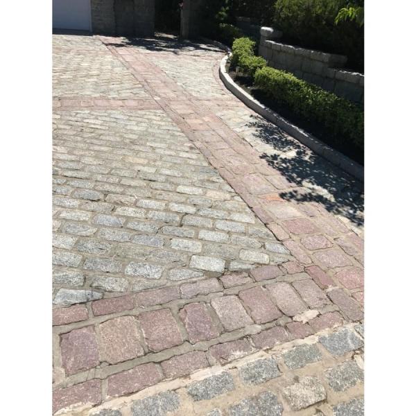 The 10 in. x. 7 in. x 4 in. Granite Cobblestone Edger blocks (50-pieces/pallet) are hand cut, blush/pink color and have a tumbled appearance. Authentically natural granite. Also known as Belgium Blocks. Being hand cut, these Cobblestone sizes vary slightly but are fairly consistent. Use these blocks to create a Cobblestone Edger for your gardens or lay them down to get an authentic old world Cobblestone walkway or driveway. These blocks are rated for vehicular traffic. Granite is 1 of the oldest building materials known to man. Resistant to scratching and durable in driveways and foot traffic areas makes it the better choice.