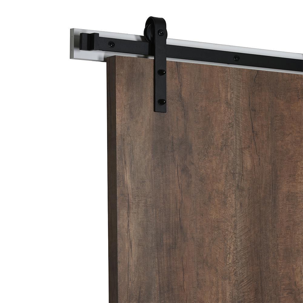 Kit includes solid wood door with laminate face, 90-3/4 in. primed wood mounting board, matte black handle and rail hardware; assembly required