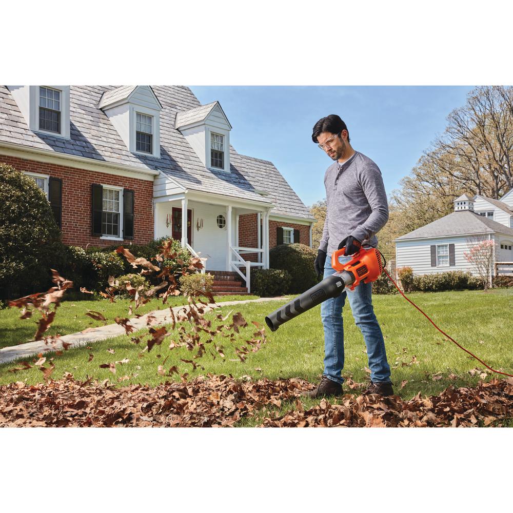 This powerful 9 Amp Electric Axial Leaf Blower moves air at up to 450 CFM and 140 MPH for clearing debris on hard or grass surfaces. Its lightweight for comfortable use whether you need to quickly clear a sidewalk or clean up the whole front yard. 2-speed control lets you select the right power for delicate work around flower beds or powering through tougher jobs. Integrated cord retention helps to prevent annoying accidental unplugging and a built-in scraper helps you get stubborn, wet leaves off of surfaces.