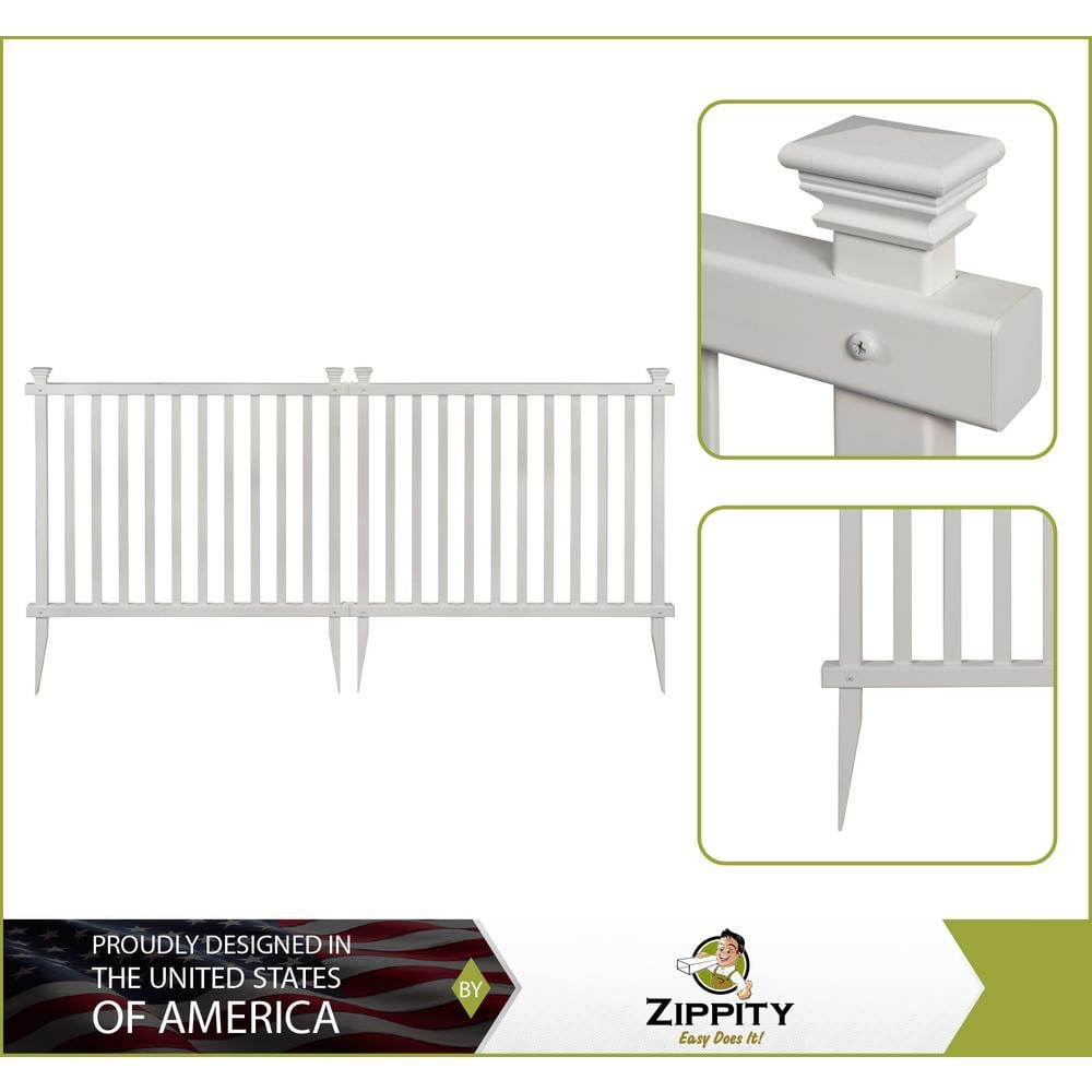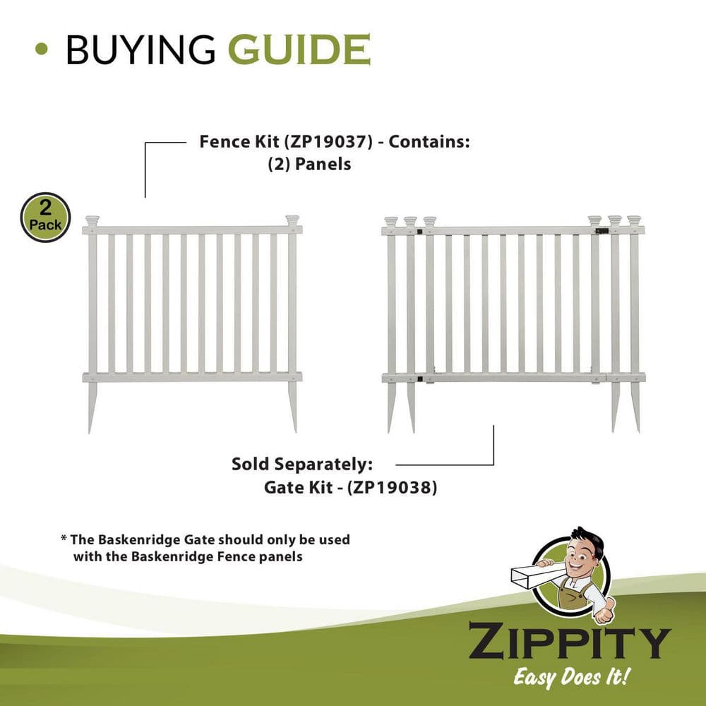 The Zippity Outdoor Products Baskenridge No-Dig Vinyl Garden Picket Fence Panel Kit offers elegant and easy-to-install landscaping solutions for residential areas. Made from weather-resistant vinyl, these panels provide a maintenance-free fencing option that resists rust, rot, and deterioration. Perfectly sized for smaller spaces, they effectively contain small pets and children while enhancing your garden's aesthetic with lasting charm.