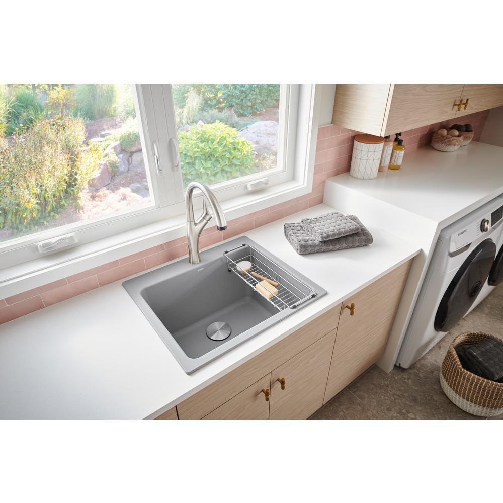 Every room in the home deserves to look its best, including the laundry or mudroom. The BLANCO LIVEN DUAL MOUNT LAUNDRY SINK includes features specifically designed to address the unique needs of cleaning beyond the kitchen. Made of BLANCO's patented SILGRANIT material, the LIVEN LAUNDRY SINK feature a generous 12 in. depth, dual mount installation (undermount or top mount for added versatility), and gently curved corners, making it as easy to clean as it is durable. Additionally, special accessories are available to keep cleaning tools handy and organized. This laundry sink will handle even the toughest cleaning jobs - without the drama, or the staining.