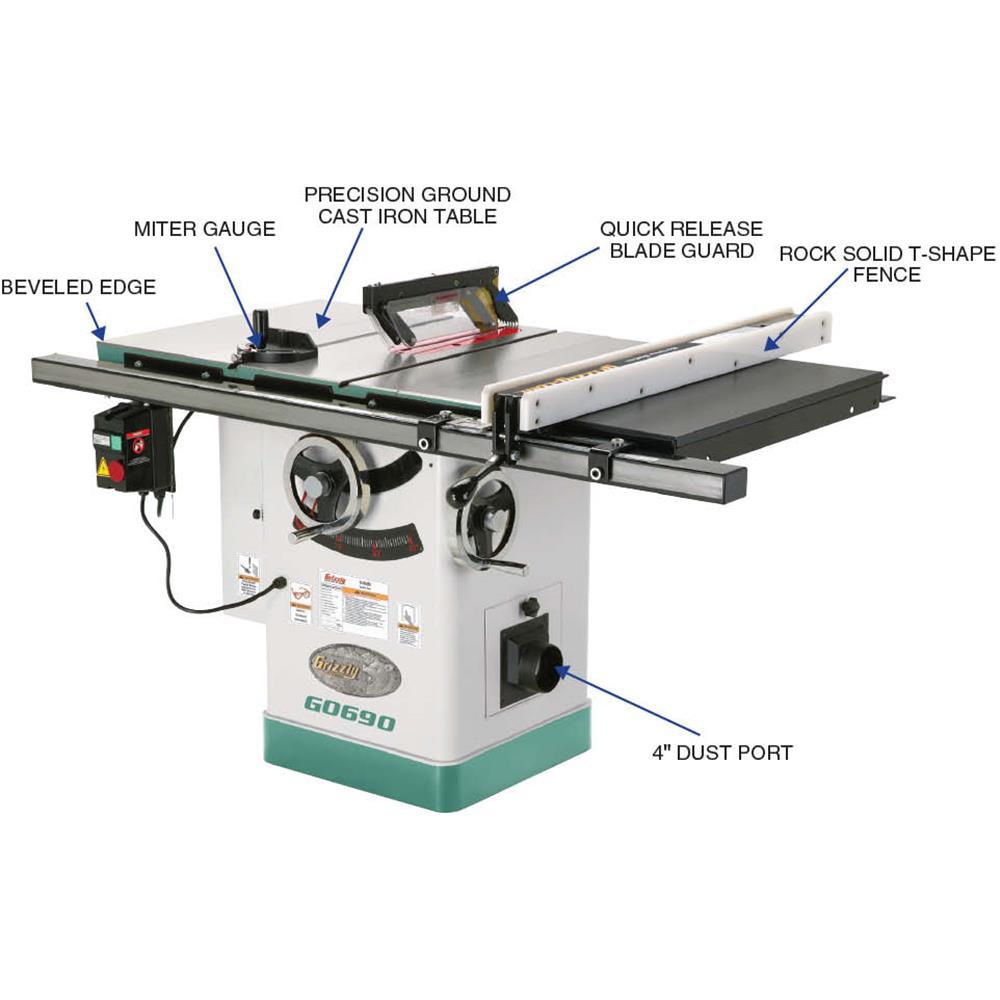 Destined to be the gold standard for 10 in. left tilting Cabinet Table Saws, this saw will be the focal point in any shop. Every part of this saw says quality and performance. From its heavy cast iron trunnions, 3 HP motor and triple belt drive to its massive cast iron table and wings, this Table Saw should last a lifetime. You'll also appreciate its camlock T-fence, riving knife, heavy cast handwheels, magnetic switch, T-slot miter gauge and 4 in. dust collection port. This saw is what dreams are made of. Made in an ISO 9001 Factory. CSA certified meeting CSA C22.2 #71.2-08 and UL 987 standards.