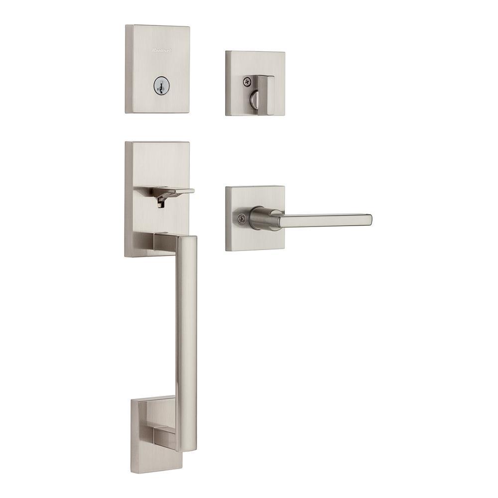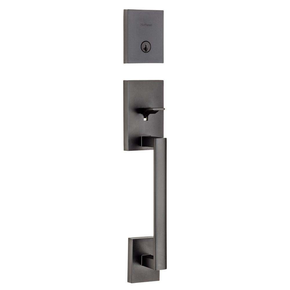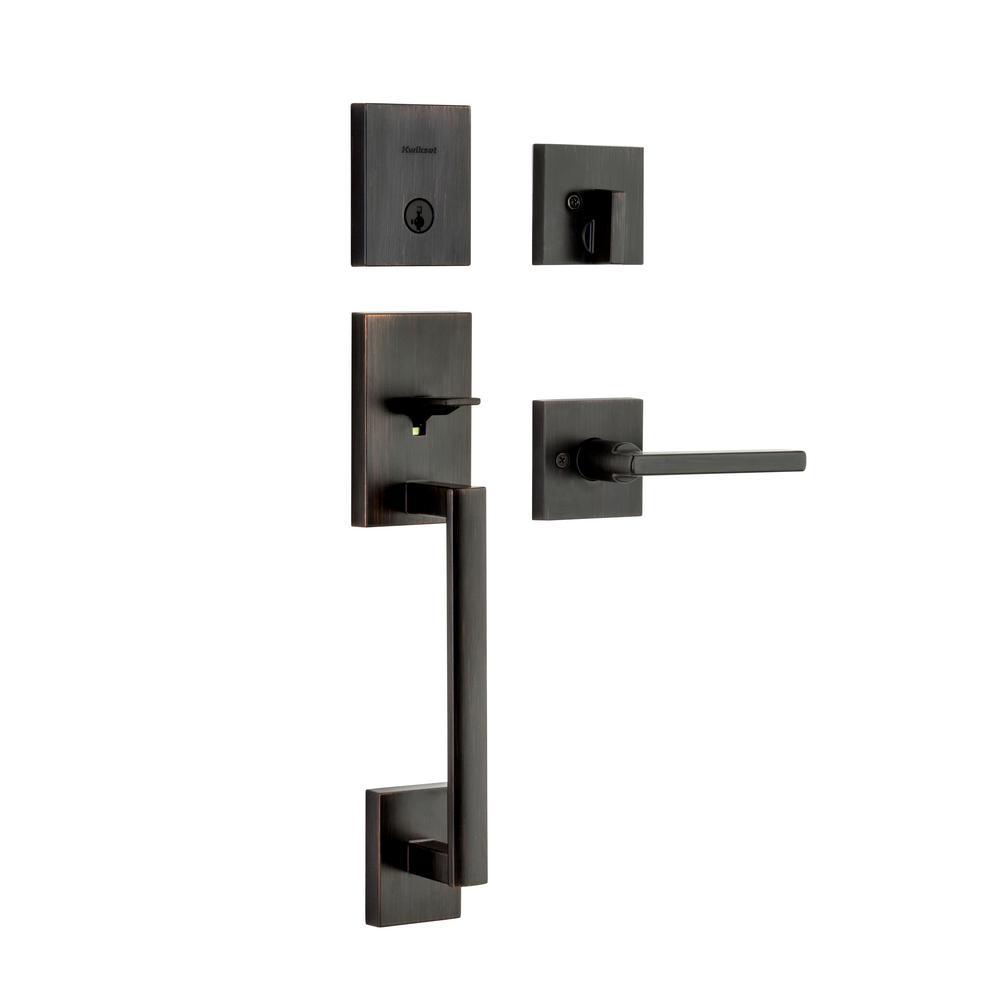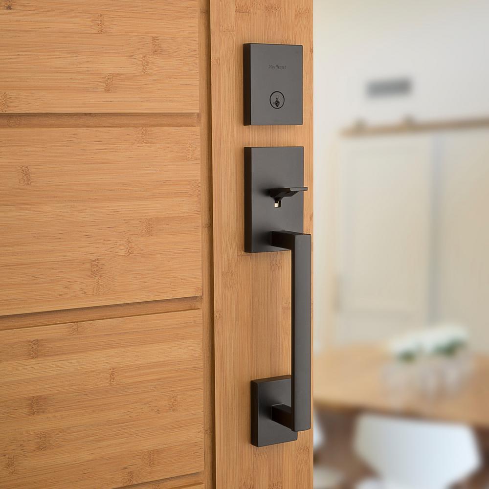 Step up to designer styles and superior security with Kwikset Signature Series products. The San Clemente handle set has a sleek, modern look. With clean lines and a variety of finishes, you can easily upgrade the entry to your home. San Clemente also features an adjustable screw that allows for easy door mounting and a guaranteed fit. The latch bolt is operated by the thumb piece on the outside and the grip on the inside. The deadbolt is operated by a key on the outside and a thumb turn on the inside. The rich tones of Matte Black add the finishing touch to this product. The Matte Black finish provides a rich and warm complement to the product’s style.