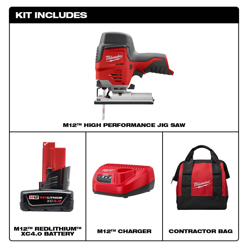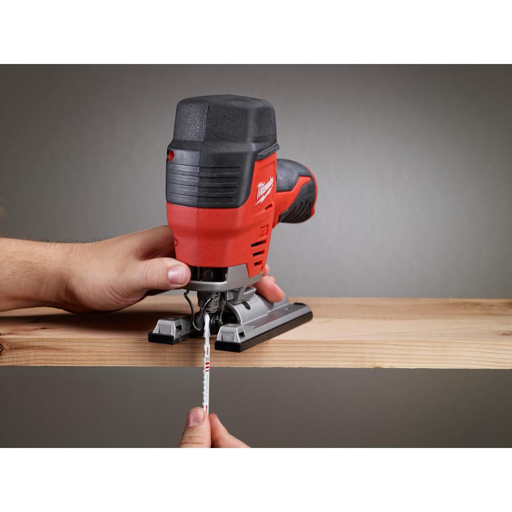 Compact and lightweight, the Milwaukee M12 12-Volt Lithium-Ion Cordless Compact Jig Saw delivers superior cutting power suitable for a wide range of trade applications. Powered by the M12 REDLITHIUM battery system, the tool is ideal for making quick cuts in wood, metal, wall tile or plastics without the hassle of a cord. The hybrid grip handle design combines the best features from both top handle and barrel grip jig saws to provide superior cut control during curved cutting applications. A 3/4 in. stroke length and 0 SPM-2800 SPM variable speed trigger deliver fast and accurate cuts and with the QUIK-LOK T-Shank blade clamp and tool-free 450 bevel capability, tool adjustments are quick and easy. Suitable for professional use or for DIY projects, this jig saw is durably made for long-lasting and reliable use. M12 REDLITHIUM XC extended-capacity battery delivers 4 Ah (48-Watt hour) of run time-even in sub-zero temperatures. Each 12-Volt lithium-ion battery is laden with new-age REDLINK circuitry engineered to prevent overloads and protect against cell-damaging discharge.