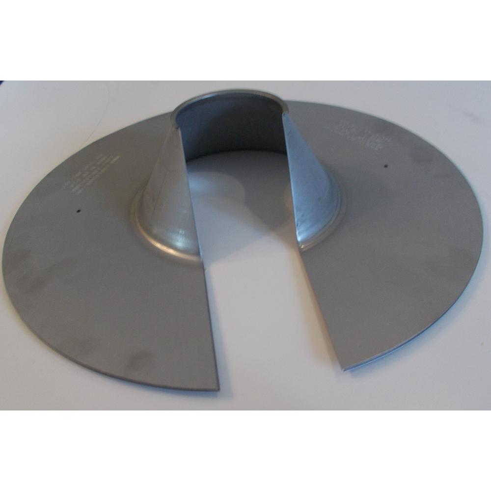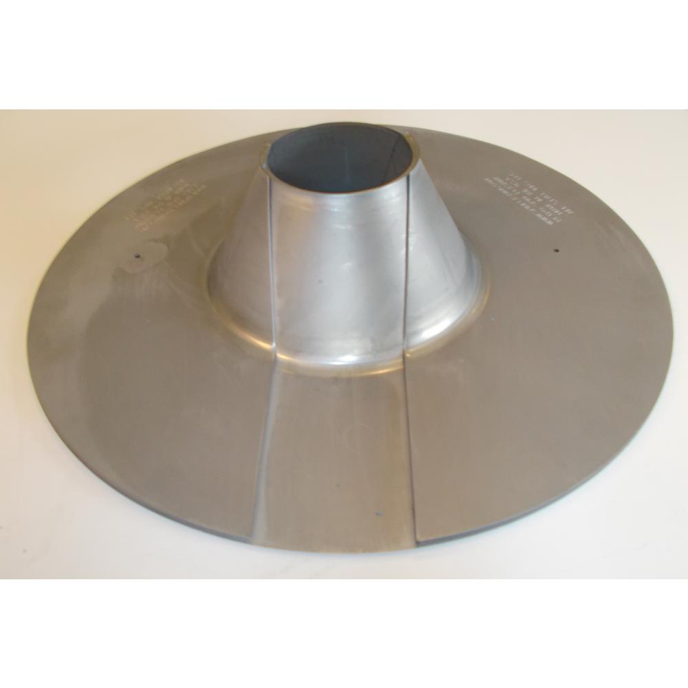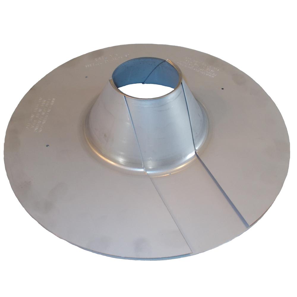 Electric Service Mast flashings can be replaced easily using this closing door technology and simple slide on from the side design. Use the Retro-Spin Flashing during scheduled roof repair Maintenance or as part of an entire re-roof project. A Retro-Spin Flashing is a tightly fitted interior and exterior impact extruded galvanized roof flashing. Retro-Spin Flashings are impact extruded from 24-Gauge galvanized steel and have no soldered seams, ugly zippers nor can any parts be damaged by ultraviolet sun exposure. Spin flashings have a conical shape that is 3 in. tall complemented by a normal sized 4 in. horizontal flange or skirt. The base width dimension is about 15 in. Dia, The Retro-Spin Flashing is installed into a roof system using National Roofing Contractor Association (NRCA), and every other roofing materials manufacturers, standard installation specifications for pipe flashings which include shingle fashion placement and nailing attachment into a roofing system. The patented design permits the interior flashing to rotate freely within the confines of the exterior flashing. Pre-punched access slots, through the side, create a door that is closed when the flashing is rotated 180°. A galvanized steel Retro-Spin Flashings can be primed and painted to match any roof color.