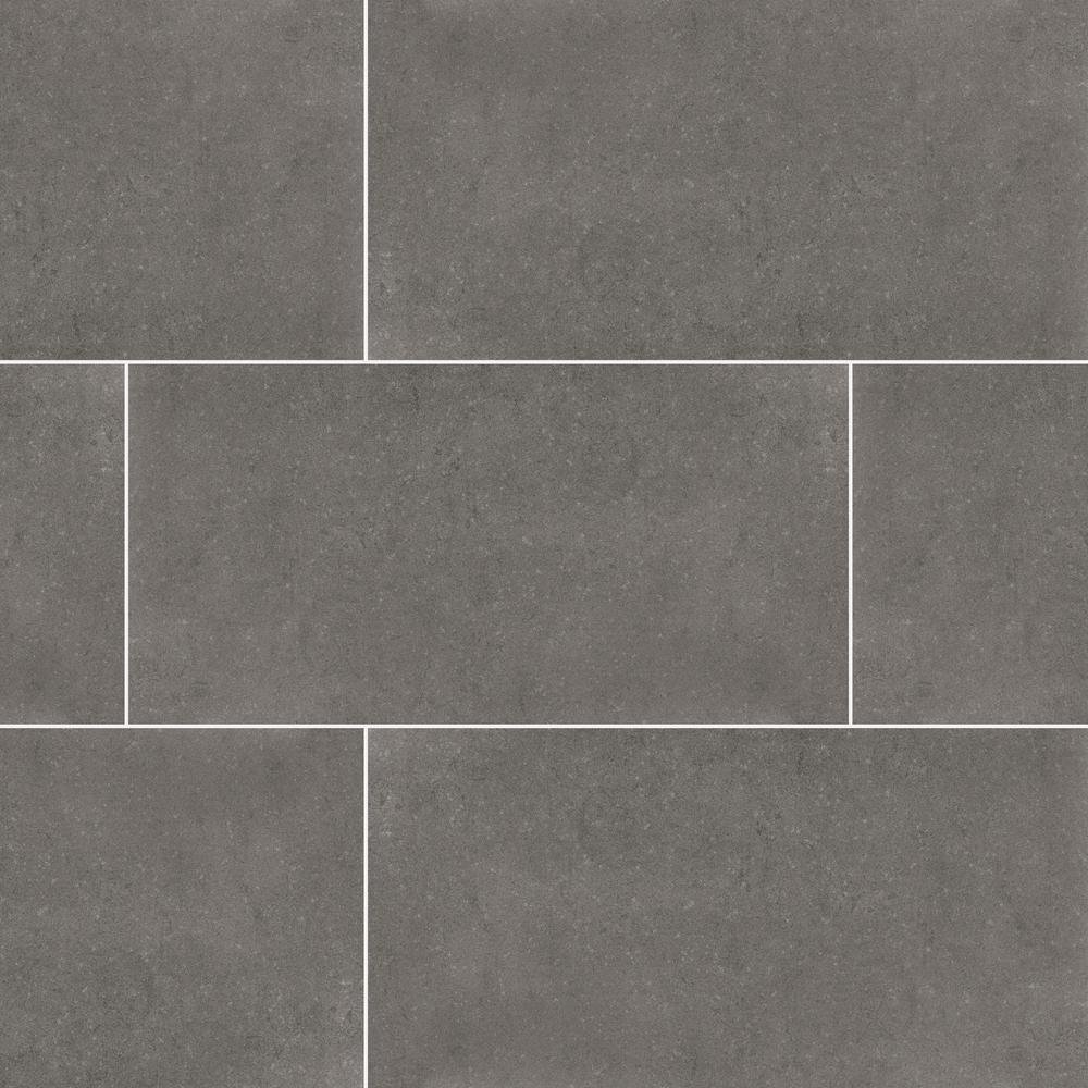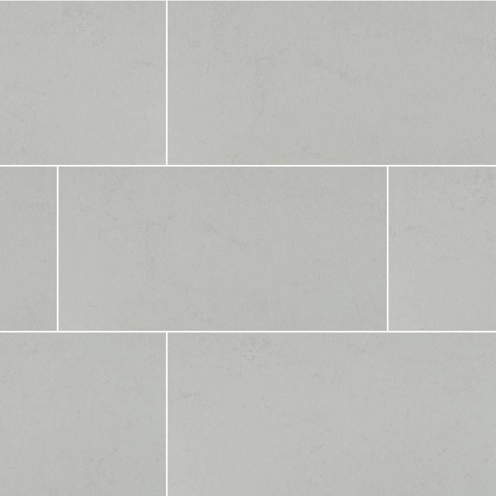 An ideal choice for your space, the MSI 's Inc, Beton Glacier 12 in. x 24 in. Porcelain Floor and Wall Tile features a smooth, low sheen finish to help add style to your decor. This grey rectangular tile with a concrete look is made with the color body technology and adds class to contemporary aesthetic. Suitable for medium-duty commercial or residential floors and walls, install this tile to incorporate a distinctive personal signature in a wide variety of designs and patterns. This is a rectified tile, mechanically finished on all sides to achieve uniformity. Its precise sizing allows for a thinner grout joint, which results in a clean, professional install and reduces staining issues.