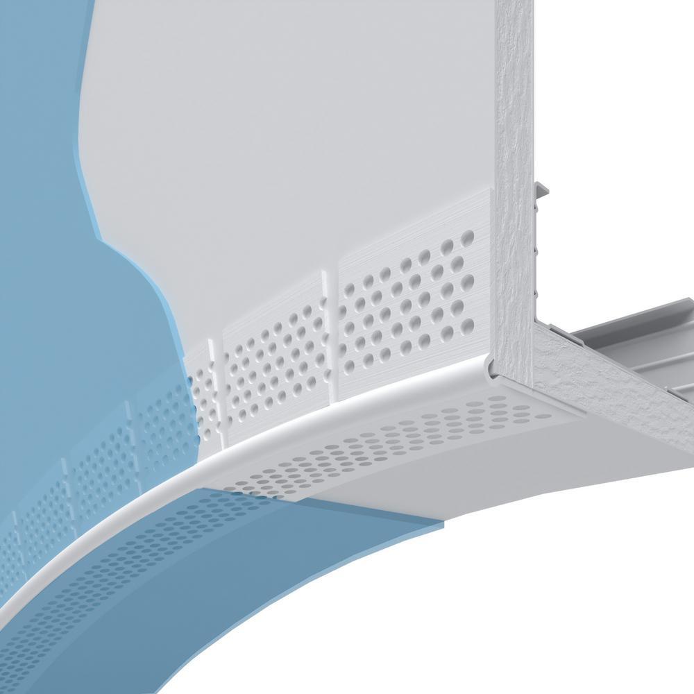 Vinyl archway corner bead form fits almost any arch, curve or radius to provide rigid corner and edge protection. The notched single flange adapts to virtually any radius condition. Multiple perforations along flanges and notches enhance compound and veneer plaster bonding. In addition to nail or staple fastening, an adhesive should be used to secure arch tabs to gypsum board.