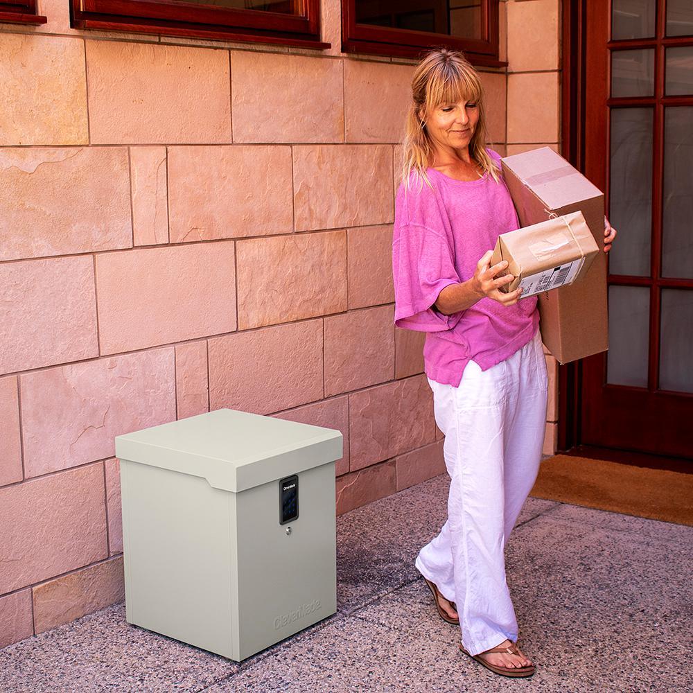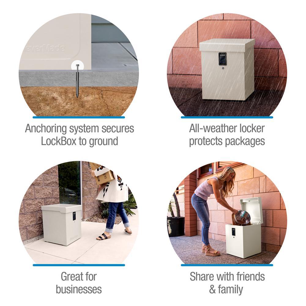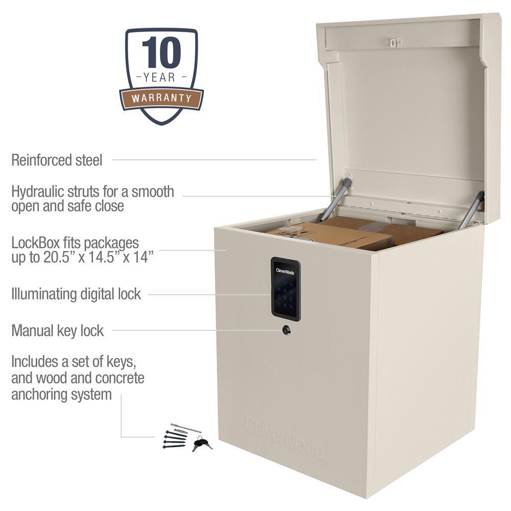 The CleverMade Parcel LockBox secures your package deliveries until its convenient for you to retrieve them. Easily share your unique code with your UPS, FedEx or Amazon delivery driver via the carrier app or use of the second line on the address form. Even share your code with your friends and family for borrowed items. The all-weather locker not only protects your packages from theft but the elements as well. For added security you can anchor the Parcel LockBox to the ground with the included anchor screws and drill bit. The CleverMade Parcel LockBox gives you peace of mind for online shopping and puts a stop to porch pirates.
