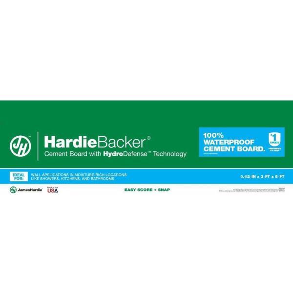 James Hardie HardieBacker Cement Board with HydroDefense Technology is a waterproof cement backerboard designed for use on walls, floors and countertops. Use on walls in moisture prone areas, as a tile backerboard and as an underlayment for all tile, vinyl and wood flooring applications. Formulated with MoldBlock Technology to protect the board against damage from mold. Works great in wet areas such as bathrooms, kitchens and laundry rooms. Provides strength, ease of use and excellent tile adhesion creating a solid base for projects. Waterproof composition throughout entire board saves cost by eliminating the need to apply a separate waterproof coating across the surface of the board.