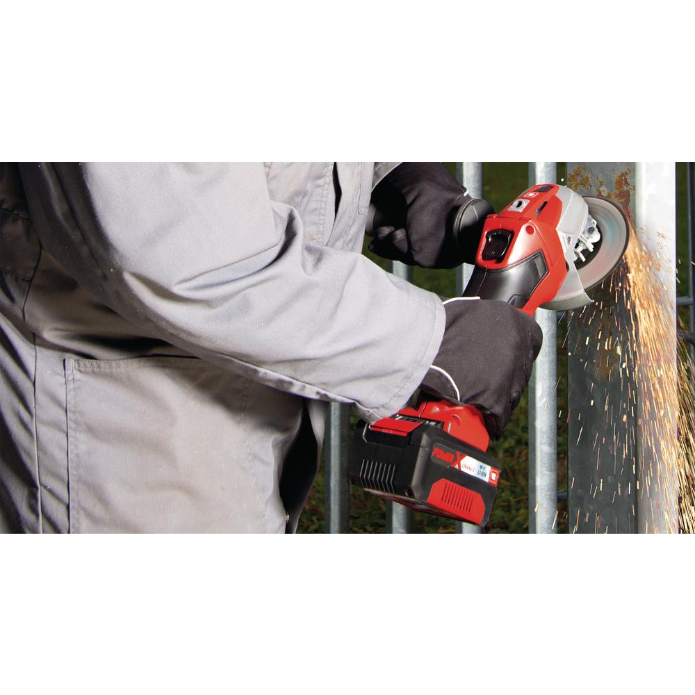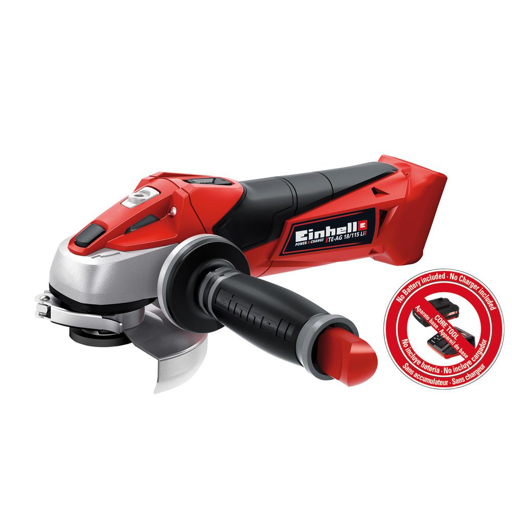 Meet the lightest, smallest cordless angle grinder of its class the TE-AG 18/115 Li 18-Volt Cordless Angle Grinder from Einhell. Perfect for abrasive cutting and polishing projects, this workshop workhorse makes smooth work out of tough grinding tasks with its robust aluminum gearbox. Start-up smoothly and work safely with the soft-start safeguard feature which ensures optimum tool cooling and lowers gear strain during operation. The streamlined design featuring ergonomic soft grip plus additional adjustable handle provides customizable comfort and precise control, and the quick-adjust disc guard rotates to suit the project and ensure safe operation. Powered by Einhells Power X-Change family the versatile battery system for Do-It-Yourself enthusiasts TE-AG 18/115 Li gives you the freedom to move from the workshop to the worksite without the hassle of a cord or anywhere power is at a premium. Battery and charger options sold separately.
