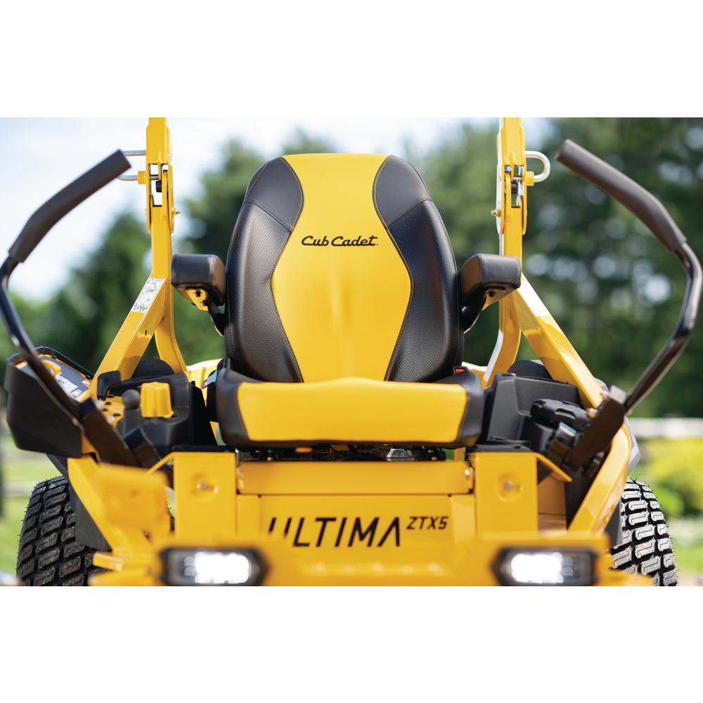 Regular price $6,899.99Introducing the all new Ultima Series ZTX another step up in Cub Cadets ultimate mowing experience. The Cub Cadet Ultima Series ZTX5 60 in. 24 HP Kawasaki FR730 Twin-Cylinder Zero-Turn Riding Mower was built to raise the bar for durability without sacrificing operator comfort and is packed with commercial-grade features. Starting with the robotically welded 10-Gauge AeroForce Max fabricated steel deck with side, top and leading-edge reinforcements is engineered for greater airflow, to make sure clippings move through the deck cleanly and efficiently providing superior bagging performance that was specifically designed to prevent clumping and blockage. Fully adjustable, premium 24 in. high back seat with cushioned armrests, independent caster wheel suspension, ergonomically-designed lap bars, spring-assist deck lift, rubber floor mat allow you to comfortably cut at your maximum speed up to 8.5 MPH for an extended amount of time. The 1.5 in. x 3 in. tubular steel frame provides optimal strength and rigidity while an open frame design provides optimal leg room and a hinged/removable floor pan allows quick and easy access to the deck and engine for ease of maintenance. Ideal for mowing slight rolling hills and several obstacles from 4-Acres to 12-Acres. The 4-year/500-hour product warranty will provide you the ultimate peace-of-mind.