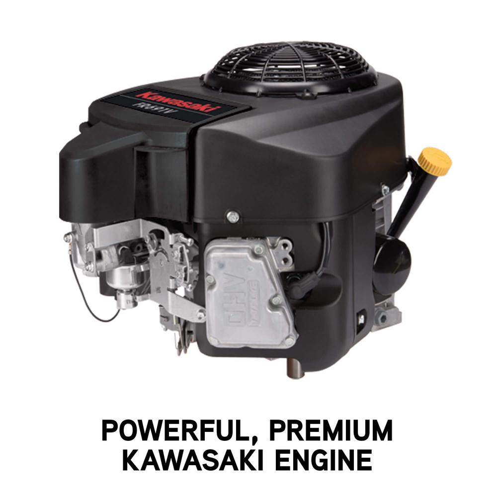 - 24 HP 726 cc Kawasaki FR730 series V-twin OHV engine for reliable starting and exceptionally smooth, quiet operation