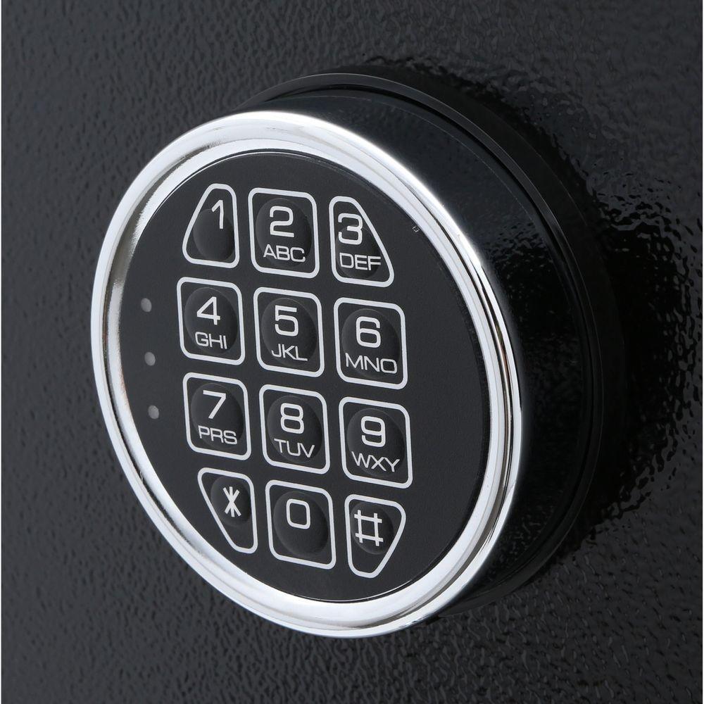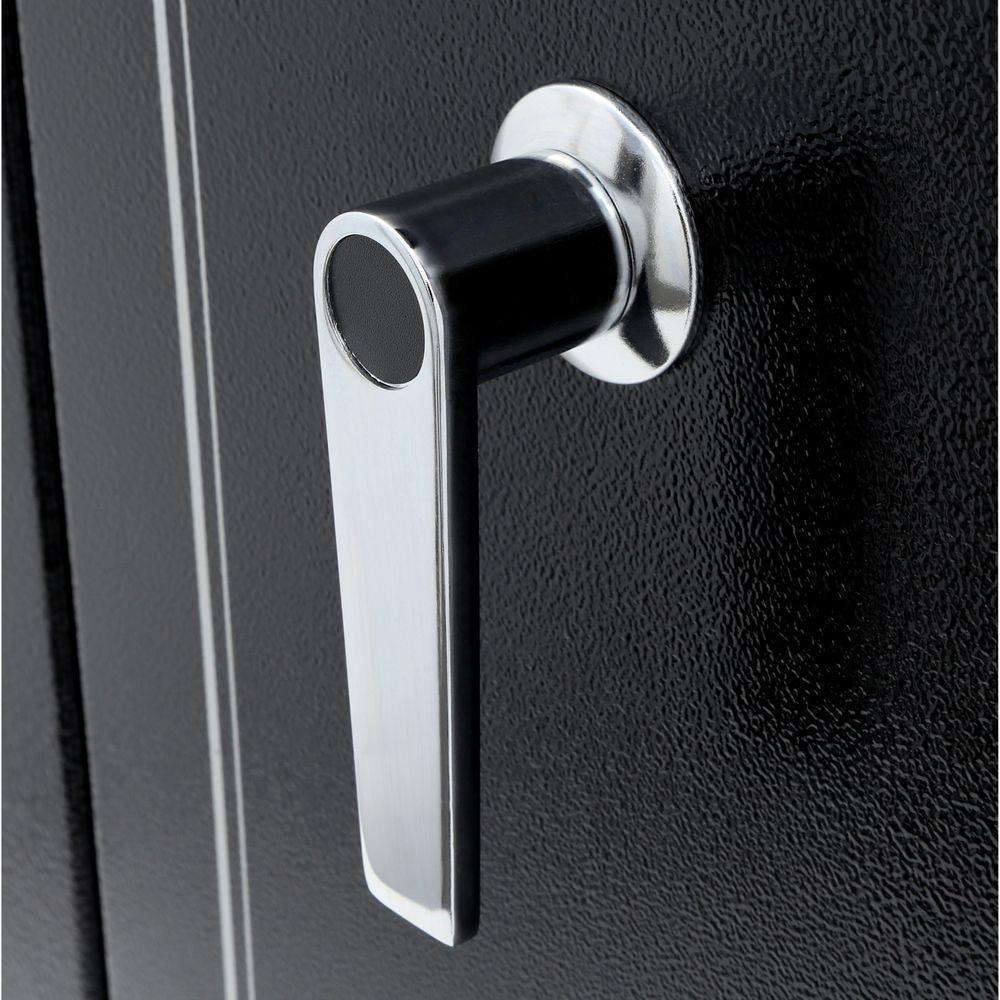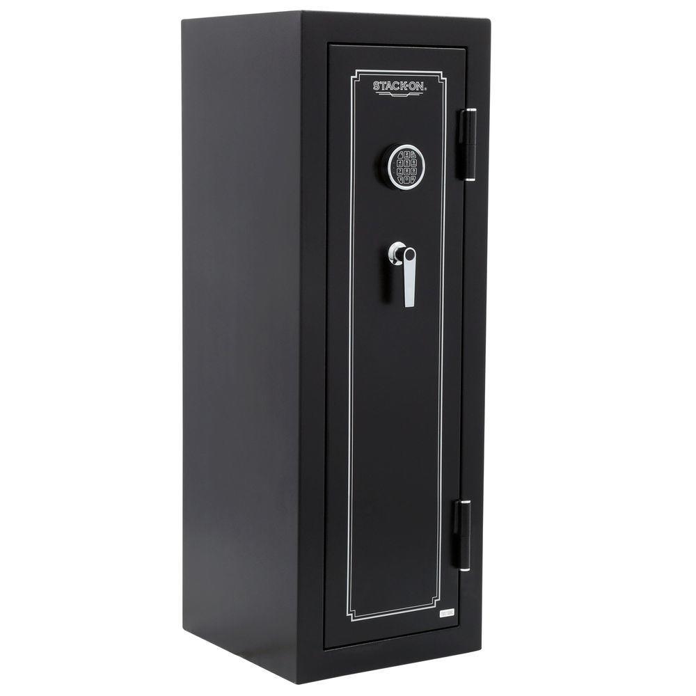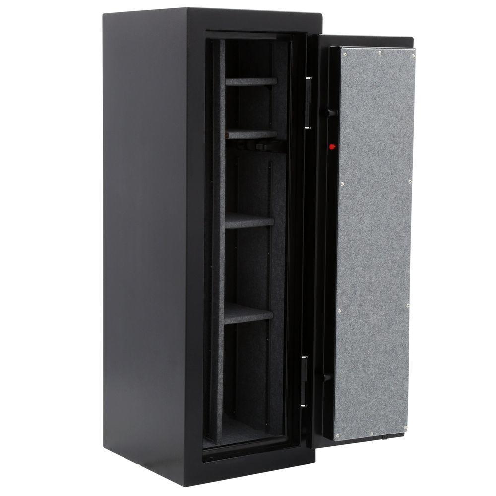 This 14-Gun Electronic Lock Safe is fire resistant for up to 1,400° for 30-minutes to protect important papers and other valuables contained inside. The fully convertible interior can convert from all guns to all shelves for maximum storage versatility. The exterior has a matte black finish with chrome accents to complete the look.