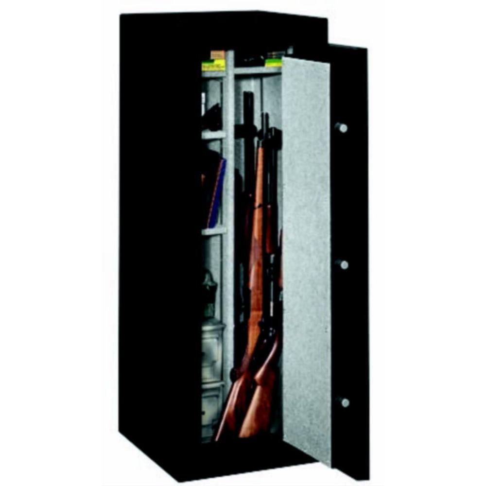Safe includes 4 adjustable shelves and is fully convertible from all guns to all shelves