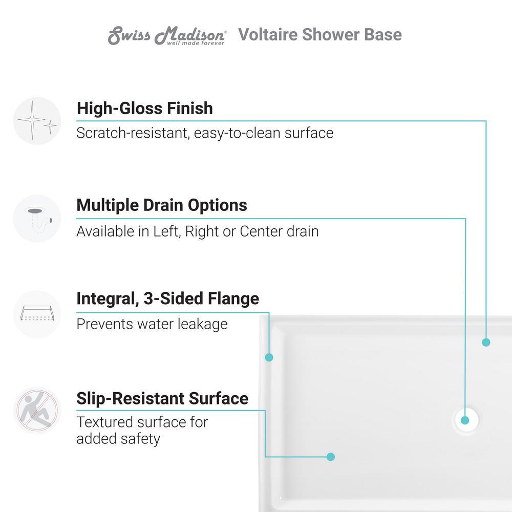 The Voltaire Shower Base is a powerful and stylish statement in any bathroom. Its practical design and low threshold provide easy access to the shower. The durable acrylic and fiberglass reinforcements make the shower base a robust selection.