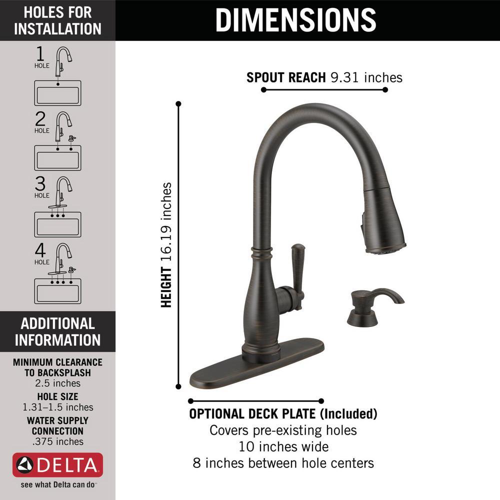 - High-arc, gooseneck design swivels 360° with a 20 in. retractable hose for added convenience during everyday kitchen tasks