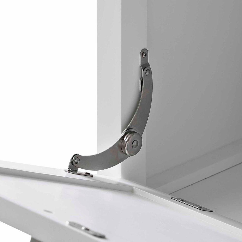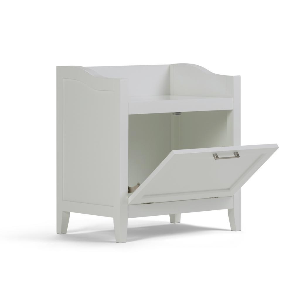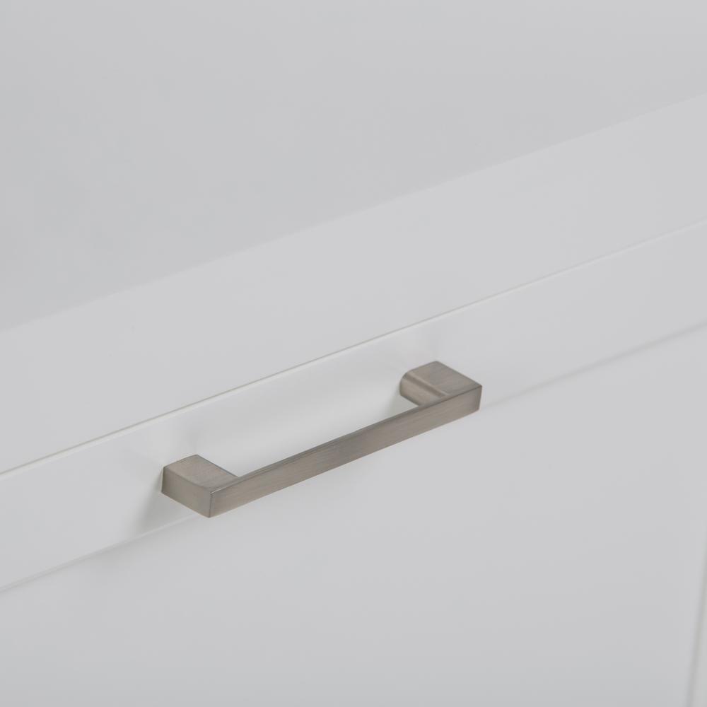 1-pull open door, contemporary brushed nickel handles, functional and versatile, can be used as a bench, laundry hamper or extra storage space