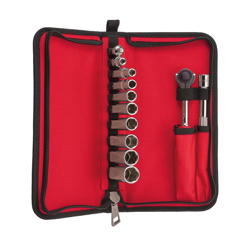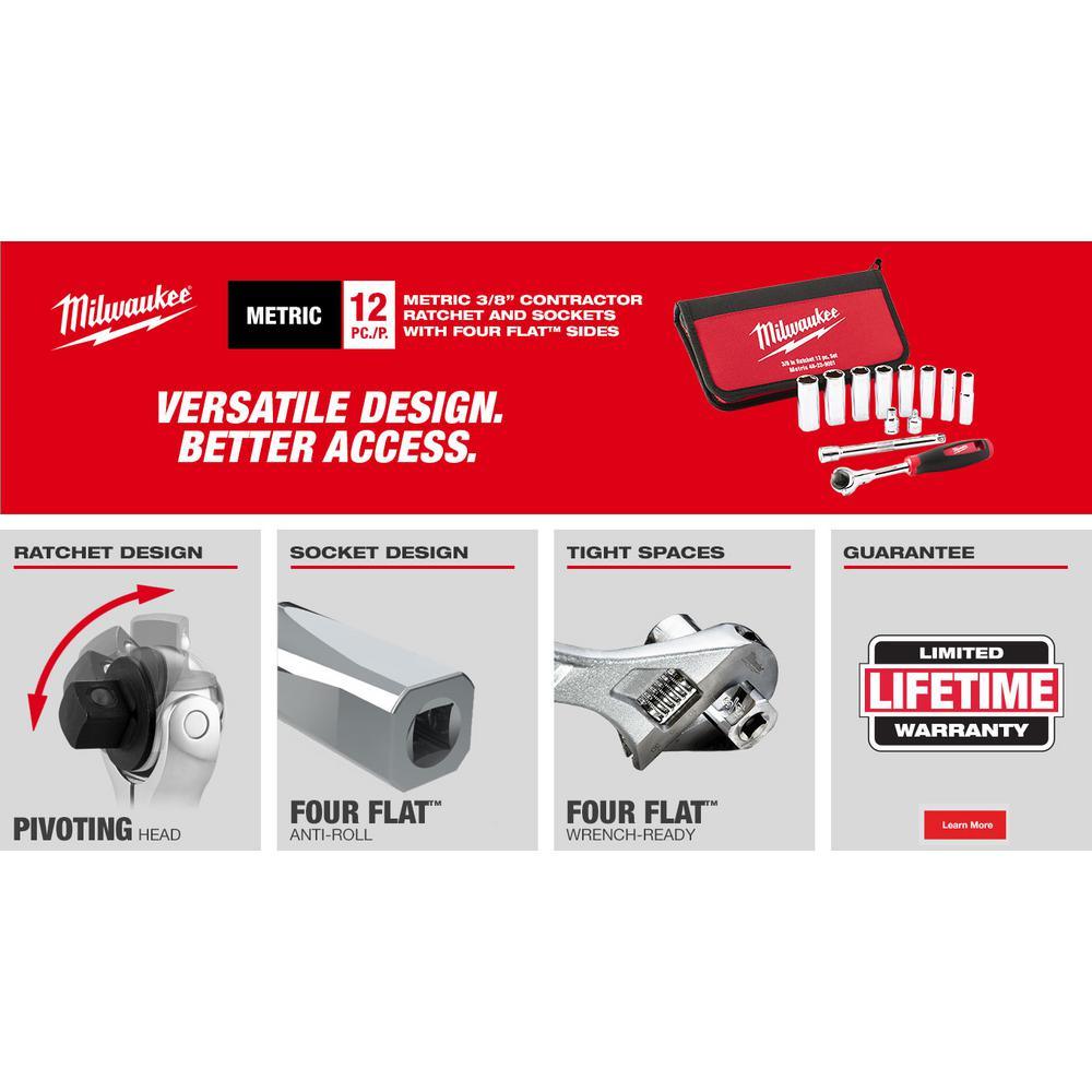 - 3/8" Drive Metric Socket Set (48-22-9001): FOUR FLAT Sides are anti-roll and wrench-ready