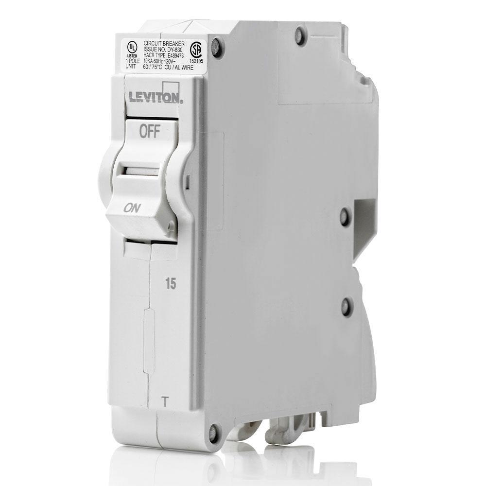 Leviton dual-function AFCI/GFCI Circuit Breakers provide overload, short-circuit, arc-fault, and ground-fault protection and feature an all plug-on design. All hot and neutral wires terminate at custom lugs in the panel, not at the circuit breaker, so the entire panel can be wired without circuit breakers installed. Branch circuit breakers can be easily plugged on at final installation. They also feature color indicators in the handle and intuitive LEDs to easily see operational status at-a-glance. For applications up to 60 Amp when using copper wire or 50 Amp when using aluminum wire.