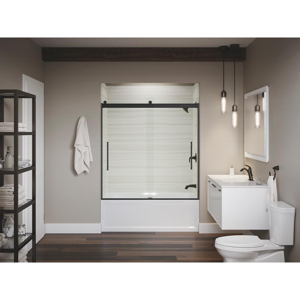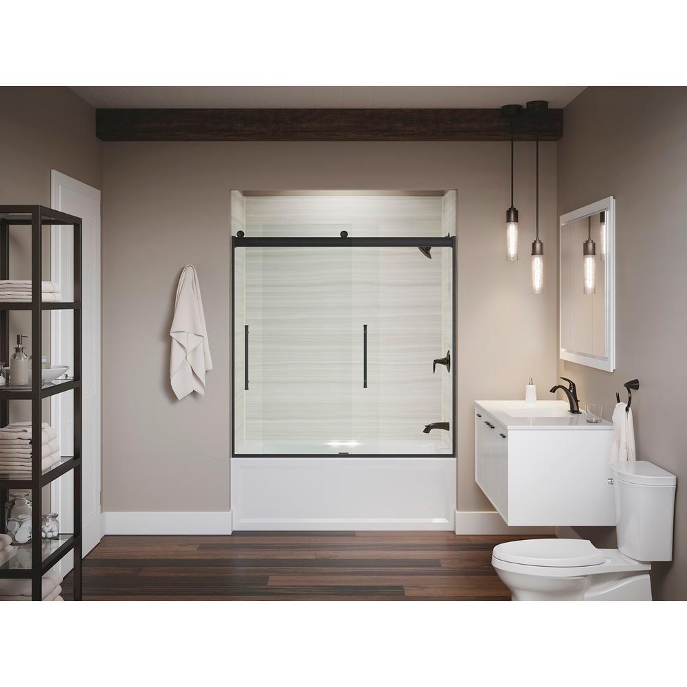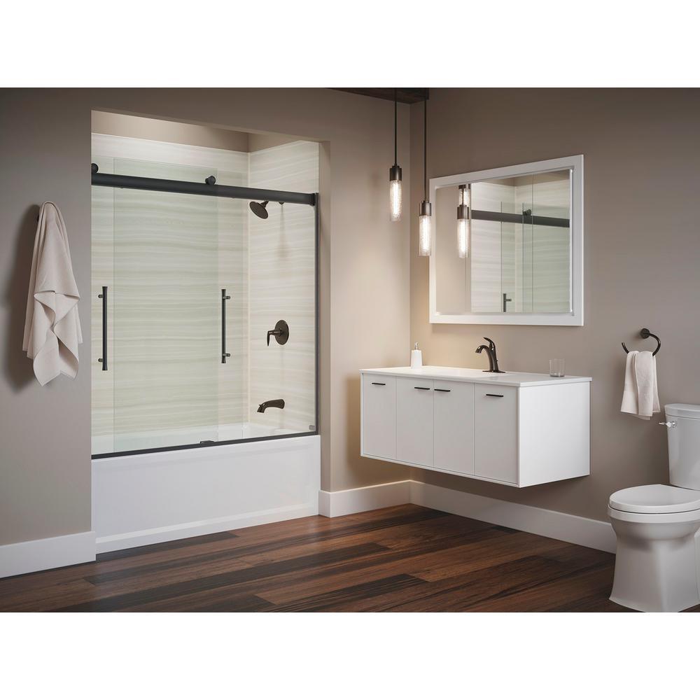 Bringing new technology and sleek style to the contemporary bathroom space, Elmbrook shower doors feature an innovative bypass system and roller design that provide an amazingly smooth, quiet sliding action for a difference you can feel. Elmbrook's unique design, including fully bypassable glass panels, makes installation easier than ever and allows for adjustability while the door is hanging. Distinguished vertical handles complement Elmbrook's modern minimalist look, creating an open, inviting space for showering.