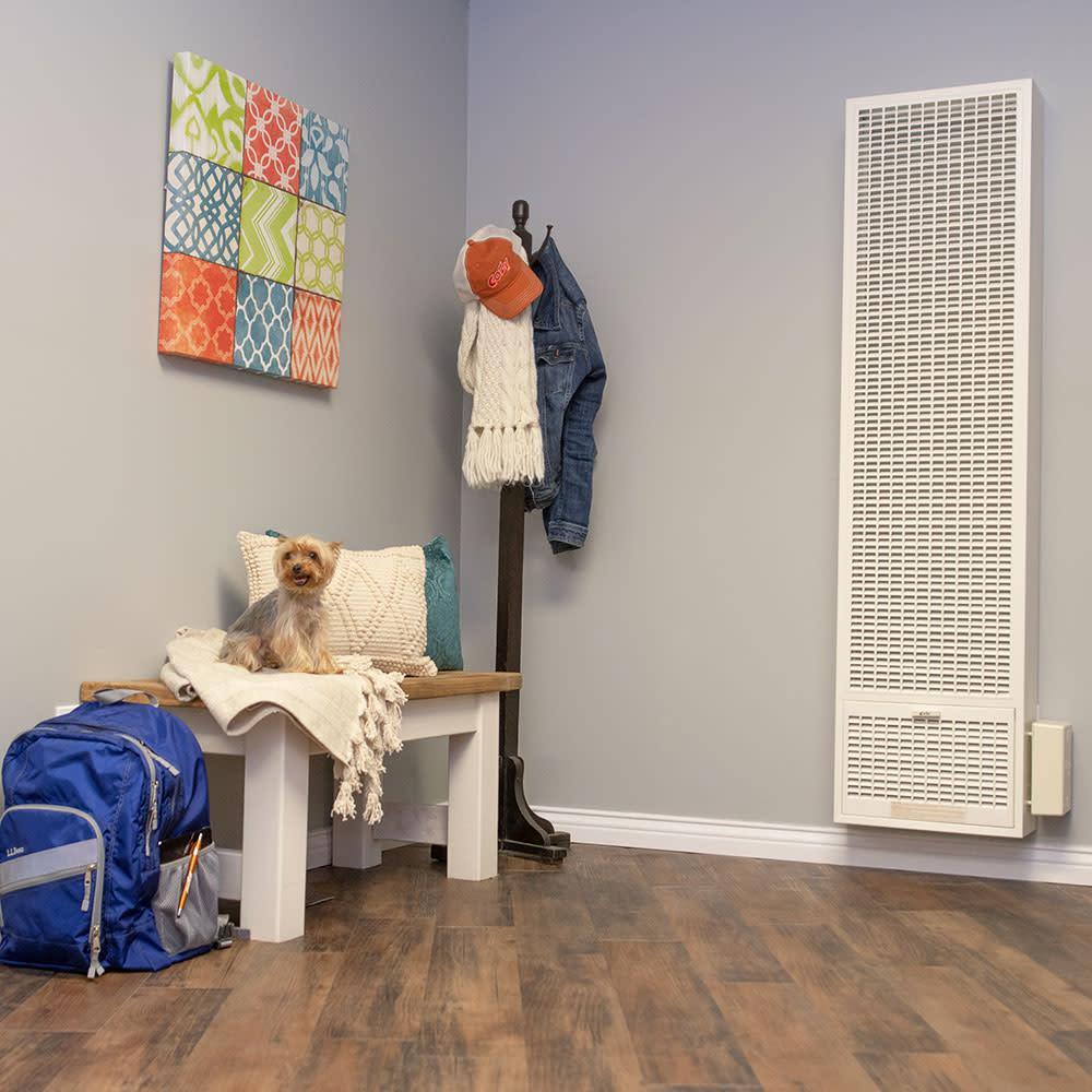 Baked enamel finish in modern white shade: Cozy furnaces resist fading and clean easily with a damp cloth
