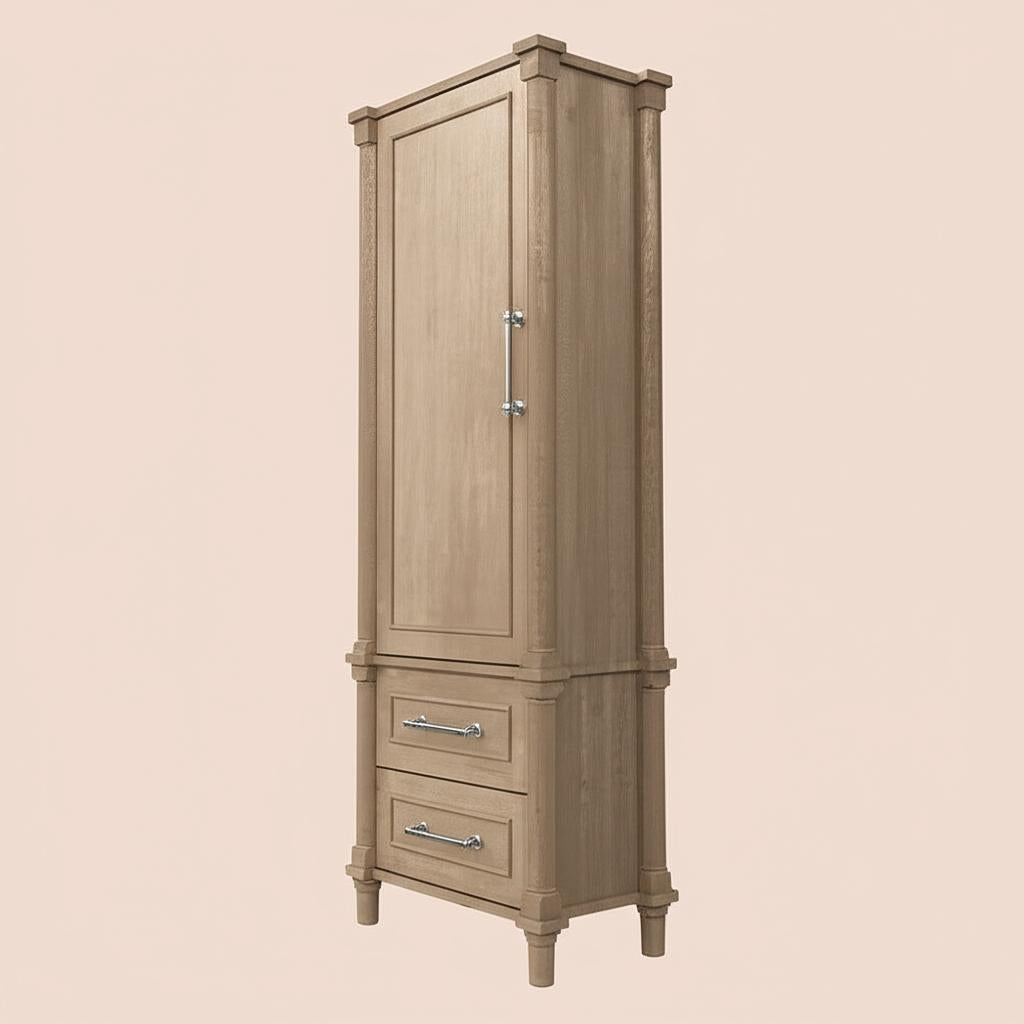 The Aberdeen Linen Cabinet transforms your bathroom into a haven of refined elegance. Its antique oak finish and brushed nickel hardware exude timeless sophistication, while the soft-close doors and drawers add a touch of modern convenience. Style it alongside the Aberdeen vanity for a cohesive and luxurious look. This cabinet is not just storage; it's a statement piece that elevates your space.