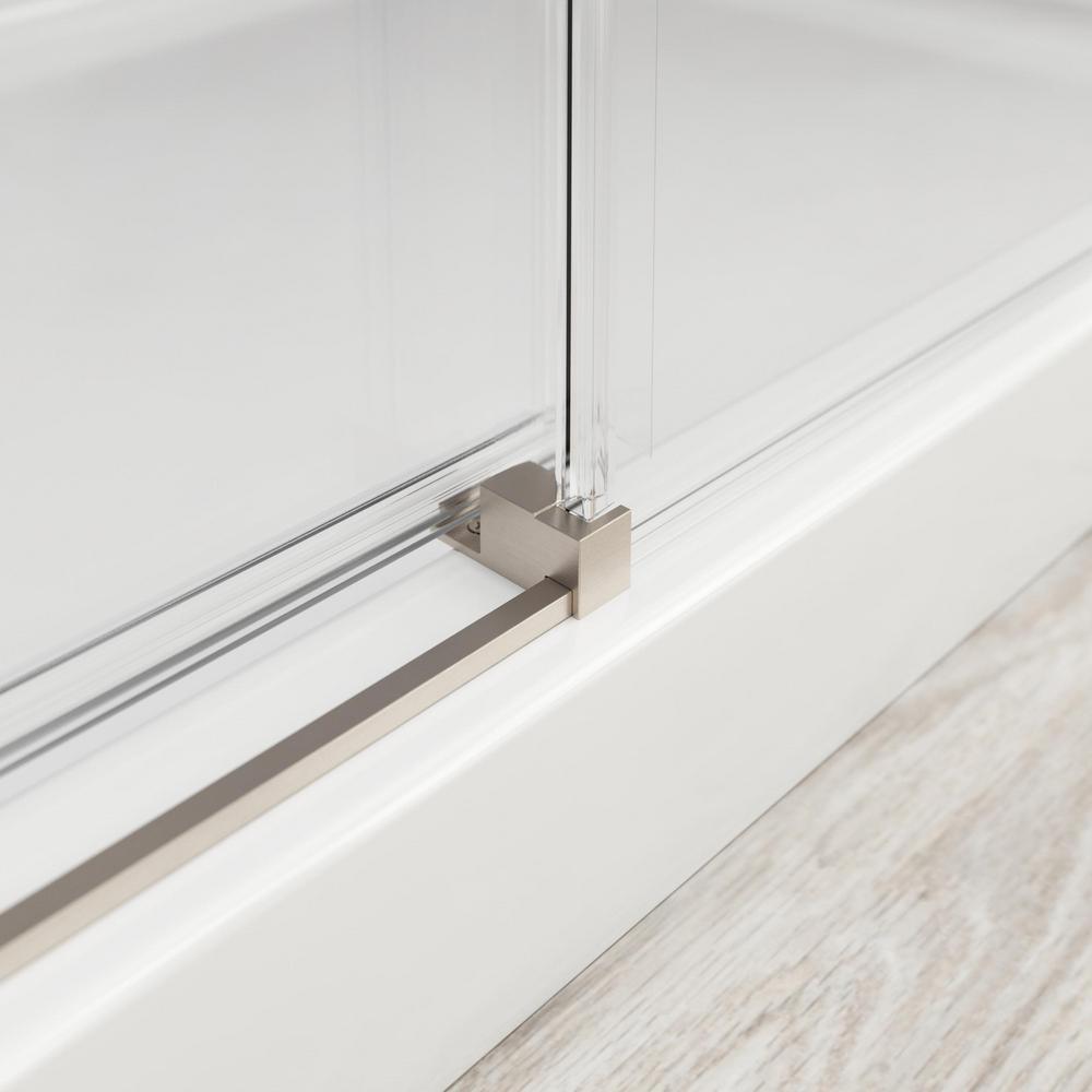Frameless shower door clear glass panels are completely transparent and provide the most open and contemporary feel