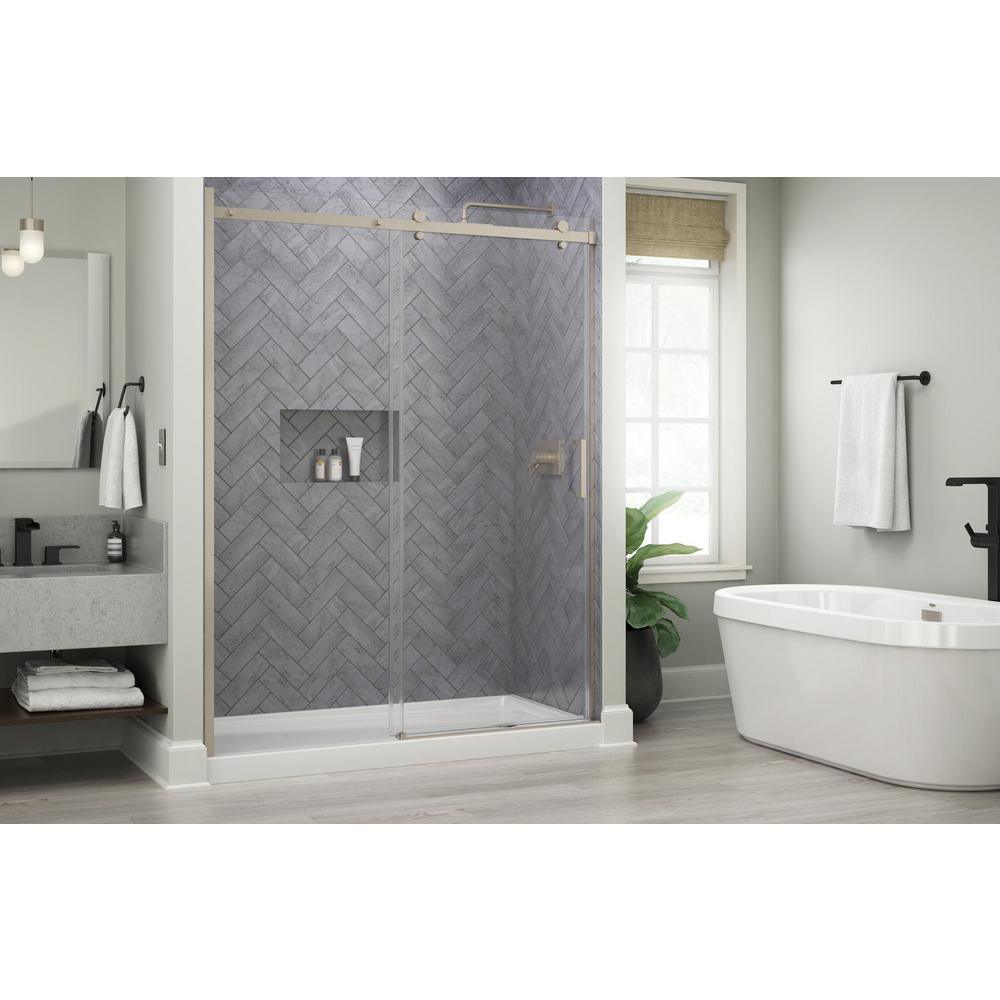 Whether you're looking for a moderate DIY project or working on a bathroom remodel, upgrading your bathroom is easy with Delta's Commix shower door. This frameless shower door features premium 5/16 in. (8 mm) SpotGuard treated glass and an exposed roller to achieve an trendy, barn door aesthetic. Install your door with confidence knowing the Commix frameless shower door is backed by a 5-year limited warranty. Customer service is a priority at Delta so all Delta shower door top tracks, bottom tracks, side jams and seals are covered by Delta's DOOR (Don't Overreact, Order Replacements) Program.