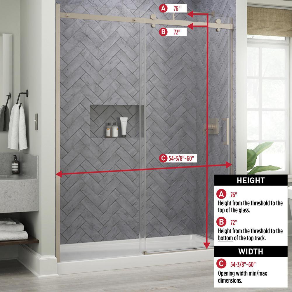 Door measures 54-3/8 in. to 60 in. x 76 in. offering a walk-through width of 19-7/8 in. to 25-1/2 in.