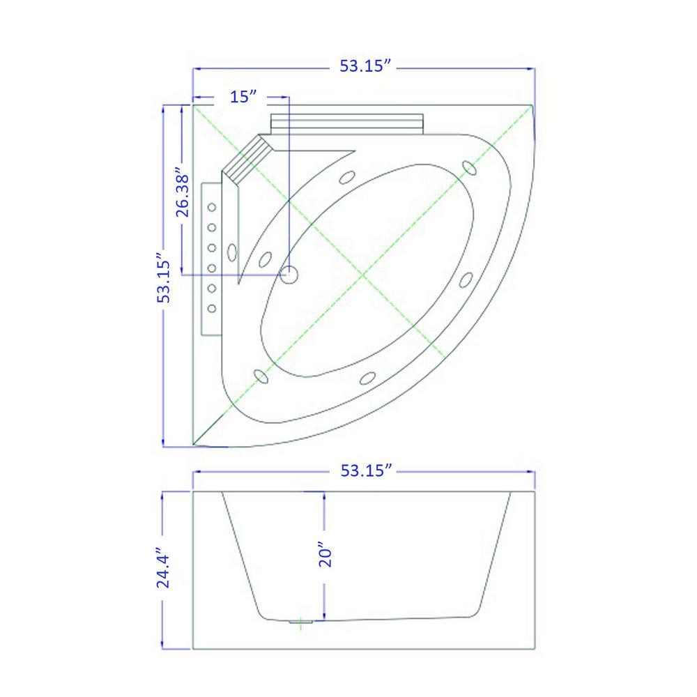 Whirlpool bathtub white 53.15 in. x 53.15 in. x 24.4 in. hot tub 6 water jets - daisy