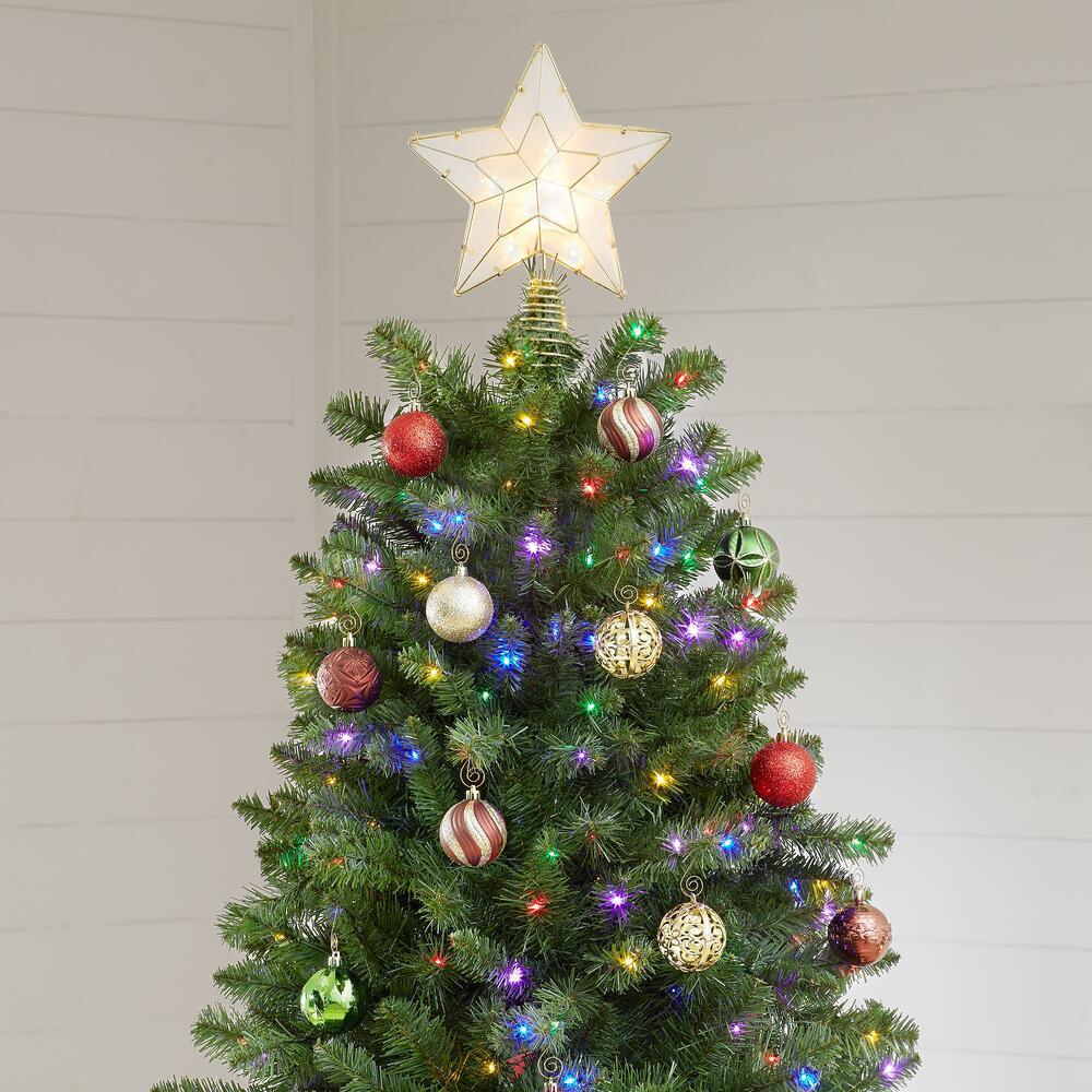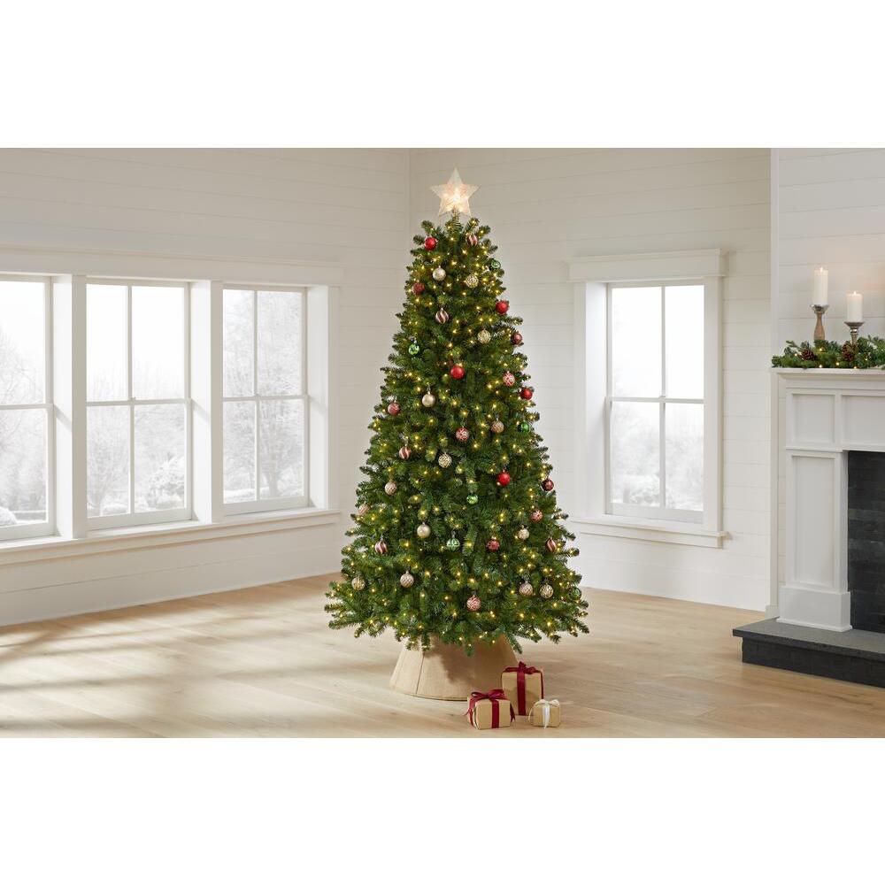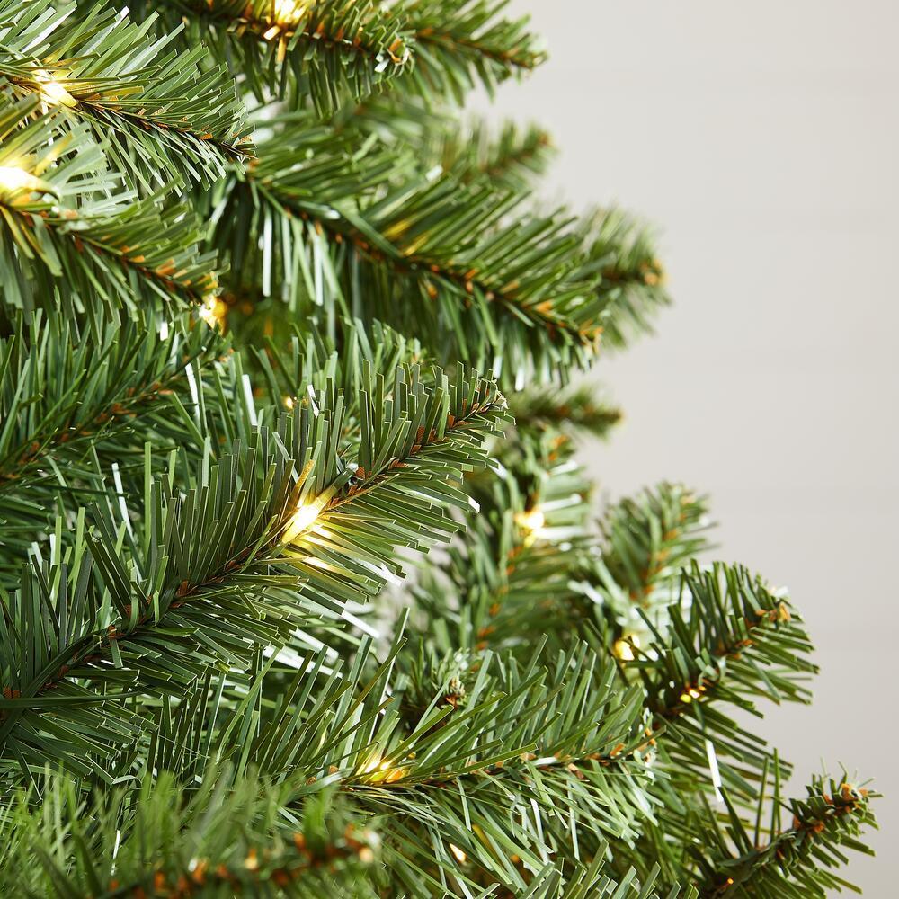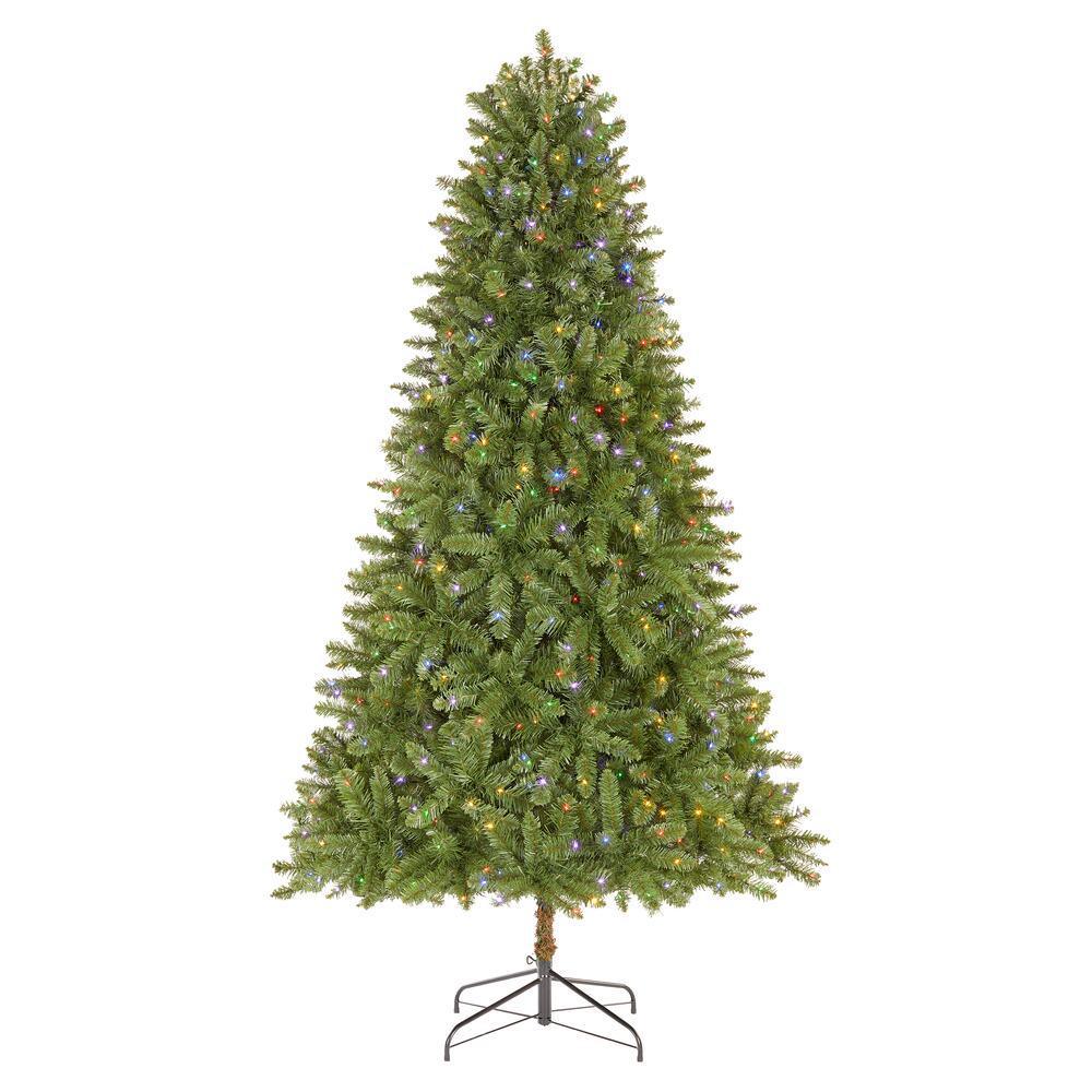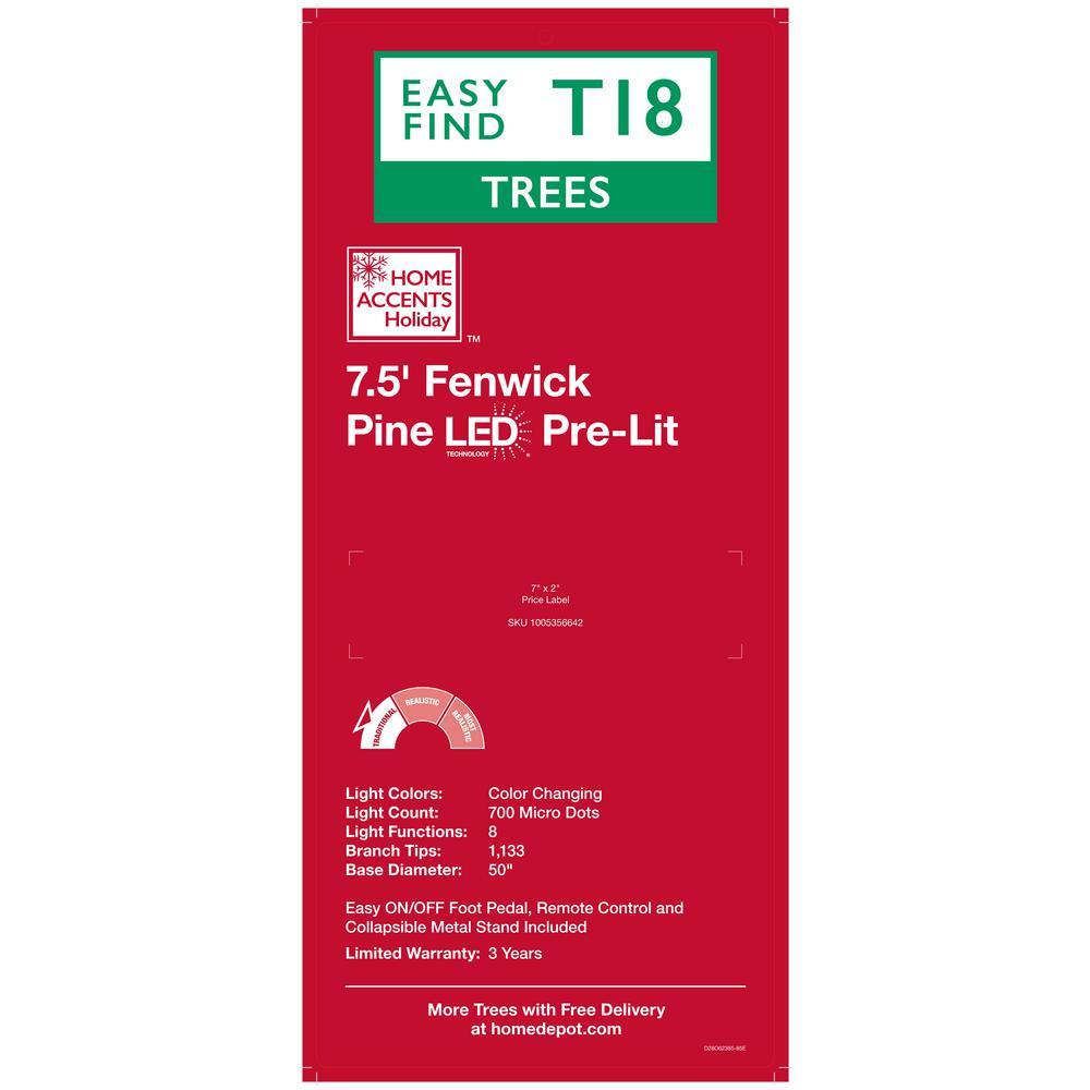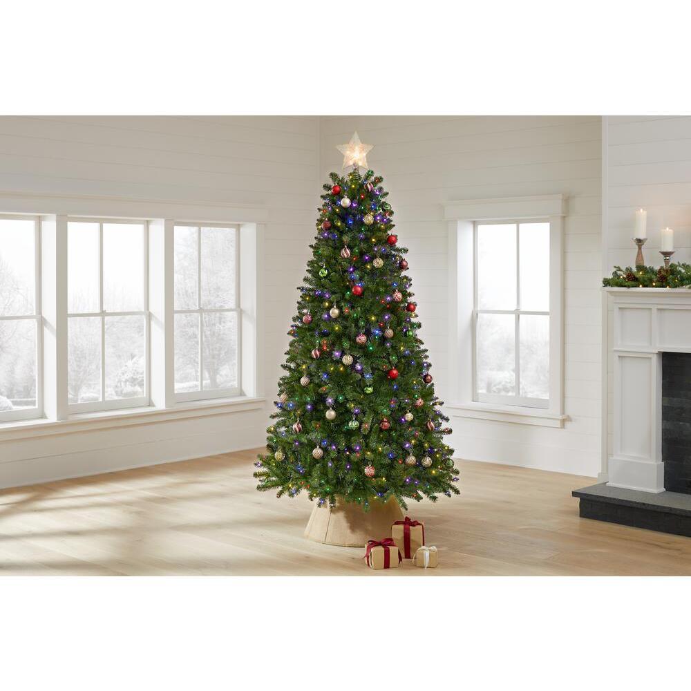 Bring Christmas to life with this 7.5-ft. Fenwick Pine Artificial Christmas tree with micro dot LED lights. Mimicking a Sheffield Pine, this tree is outfitted with 1,133 flame-resistant PVC branch tips that offer a full appearance. It also features 700 color-changing micro dot LED lights with eight dazzling functions you can control with the included remote. This artificial tree measures 50 in. around the base and has ultra-thin wire for a realistic look.
