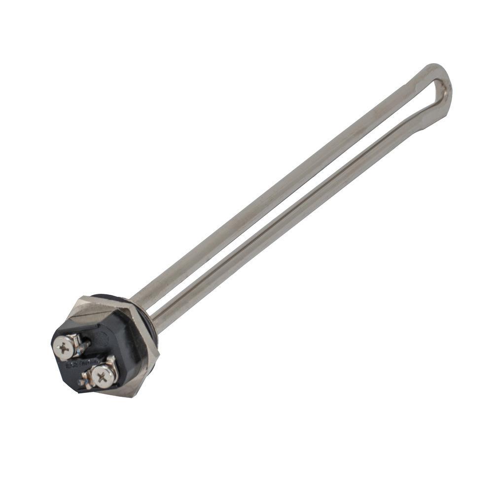 The Eastman Straight Water Heater Element has a high watt density and has a wattage and voltage of 240V x 5500W and has an 9-inch minimum tank diameter. It features a screw mount with gasket and is coated with a copper sheath which helps in resisting corrosion. It has a straight element design. The water heater element is designed for use in all replacement situations if the same wattage and voltage are used. This element is the most commonly used in most water heaters. Do not exceed the rating listed on the water heater.