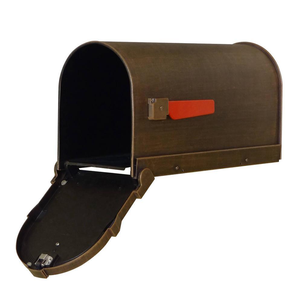 The Savannah Copper Post Mount Mailbox offers exceptional value and quality, showcasing a deeply cut, ornate cast aluminum door on an aluminum body that resists rust. Upgrade your current mailbox with the roomiest option available, perfect for keeping your important mail, documents, and packages dry and secure. With a roller bearing latch mechanism and weather-resistant construction, this mailbox is built to last. The die-cast flag is finished to match the body and will remain upright to signal pickup. Made from rust-free aluminum with a premium powder coated finish, this mailbox will add curb appeal and beauty to your home for years to come. It can be mounted on all Special Lite mailbox posts or most standard posts, and includes a wood mounting plate. Every detail, from screws to hinges, is made with stainless steel for lasting quality.