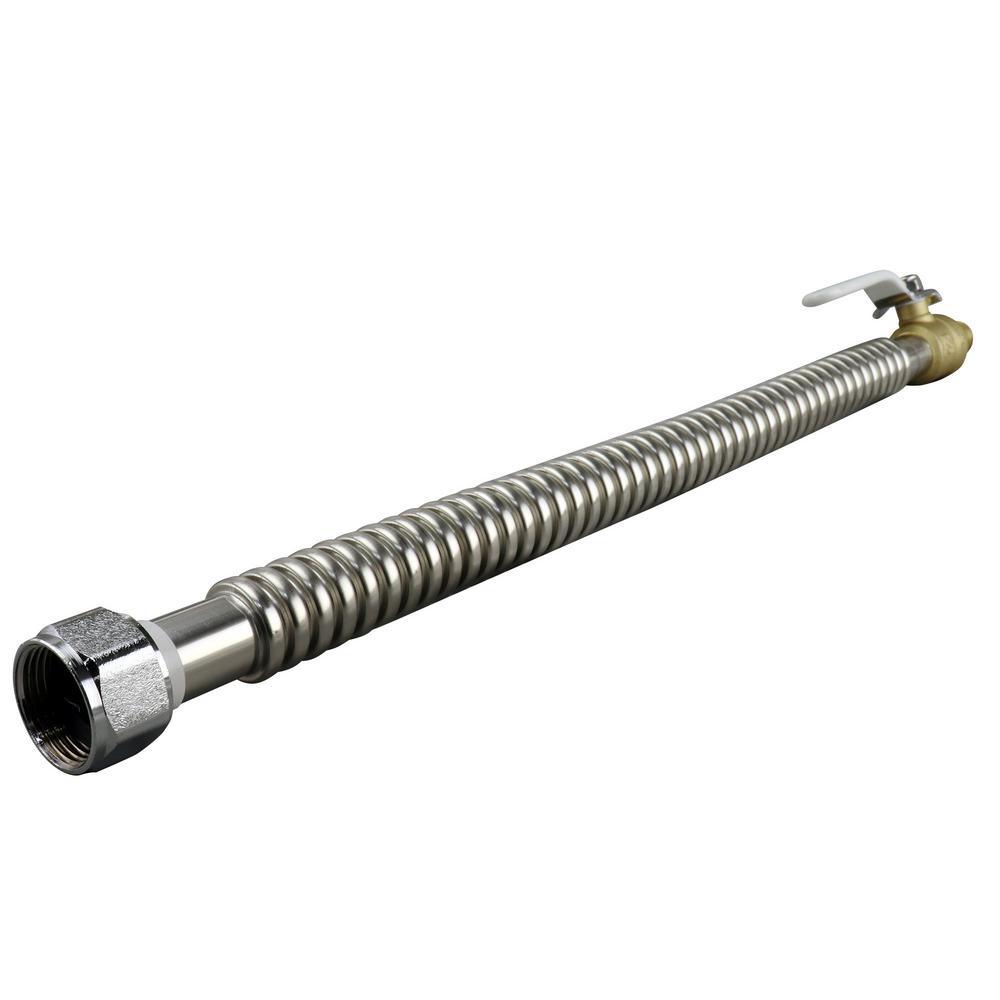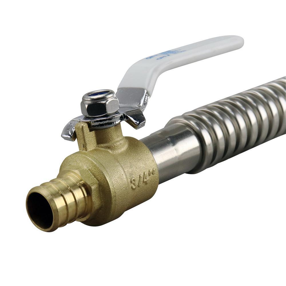 The 3/4 in. x 18 in. Apollo PEX Corrugated Stainless Steel Water Heater Connector with Ball Valve is designed for the fast and simple installation of hot and cold water lines to water heaters using PEX connections. After applying pipe thread tape to the MNPT nipples on your water heater, thread the FNPT end of the Water Heater connector onto the tank and tighten with pliers. Then simply connect to PEX using copper crimp rings, stainless steel pinch clamps or stainless steel sleeves and your water heater is connected. The integrated quarter-turn ball valve is factory crimped and allows for simple flow control.
