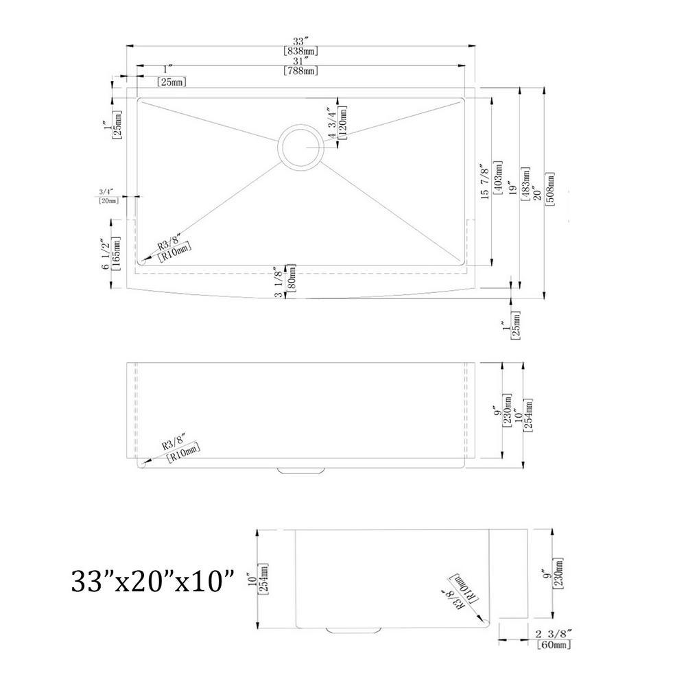 The Farmhouse Stainless Steel Sink by Empava is a perfect combination of style and practicality. The sink with a curved farmhouse apron front that brings an essential design element and visual attention in your kitchen. The rear drain placement increases workspace in the sink and storage space in the base cabinet. Exclusive noise defends sound dampening protections against noise. During the past years, Empava Farmhouse Stainless Steel Sink have been a very popular choice for laundry room upgrades and new builds.