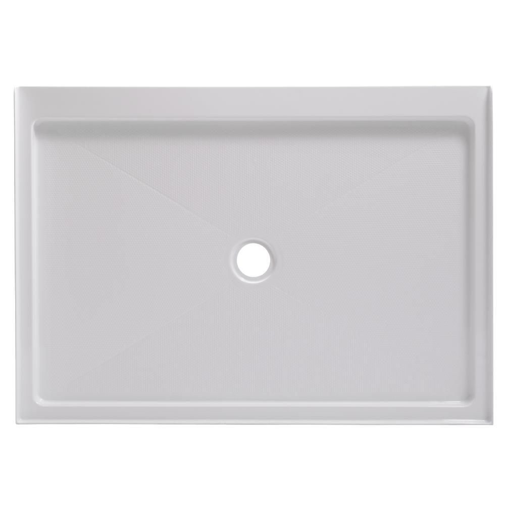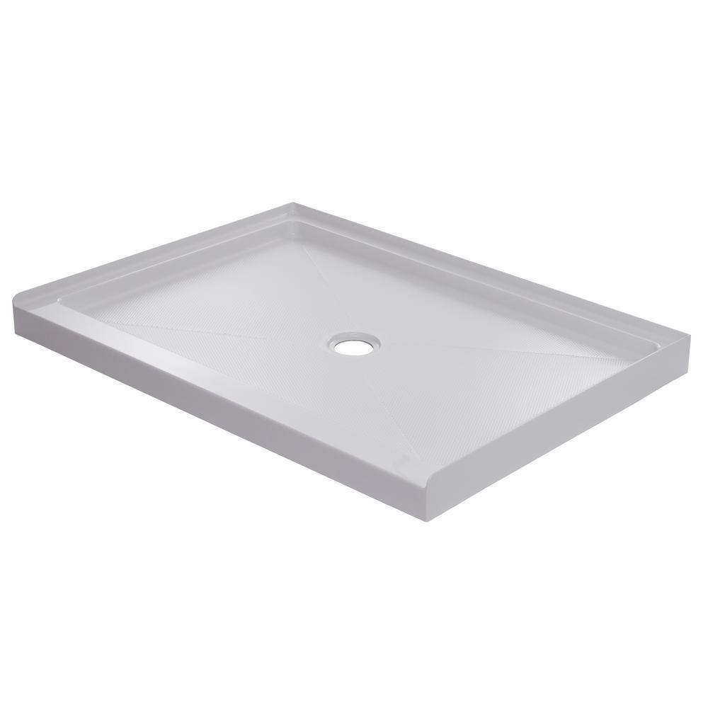 High gloss shower base features durable acrylic with MDF and fiberglass for maximum support