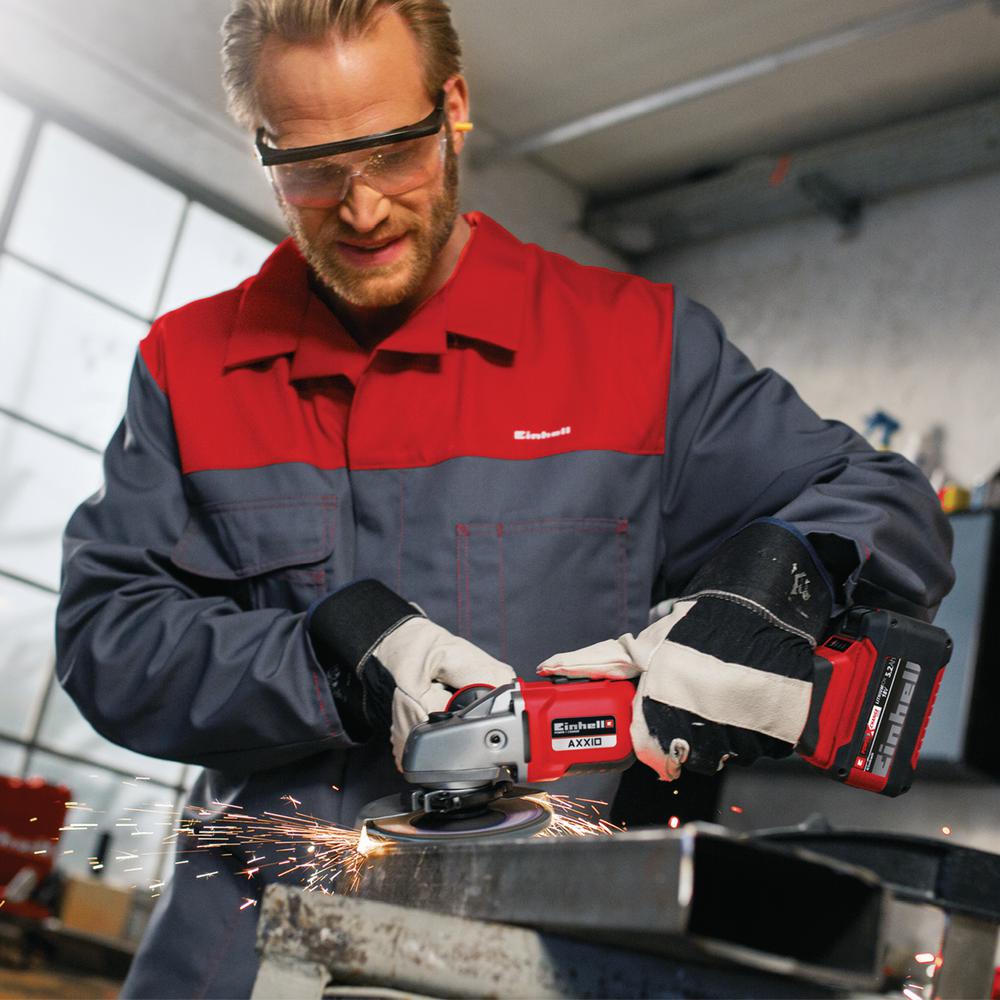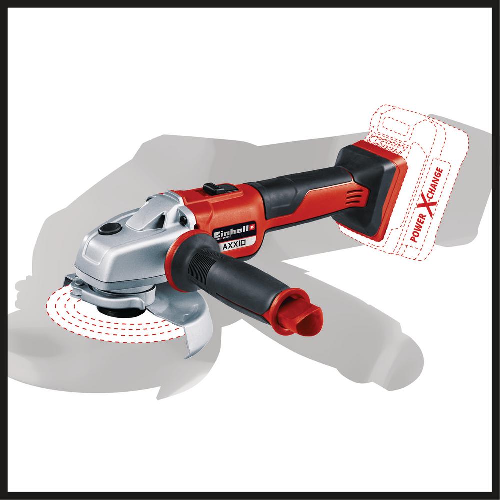 The Einhell cordless angle grinder AXXIO is the lightest brushless angle grinder in its class and features a high quality aluminium gearing housing. It is a member of the Power X-Change family, so the high-grade lithium ion batteries can be used for all members of the Power X-Change family. The battery and charger are included. For optimal cutting and grinding results it is recommended that a 2.6 Ah Plus battery or higher is used. Softstart function and restart safeguard allow for the user to remain safe when in use. With its streamline design and ergonomic soft grip and the additional handle which can be fitted in 3 available positions, the tool offers comfortable handling. The modified air guidance ensures optimal cooling of the tool and minimizes strain on the gearing during operation. The disc guard comes with a quick-adjust fastener which can be adapted with just a twist of the hand to any task. An overload cut-off contributes to greater safety and a longer service life. Cutting disc not supplied.