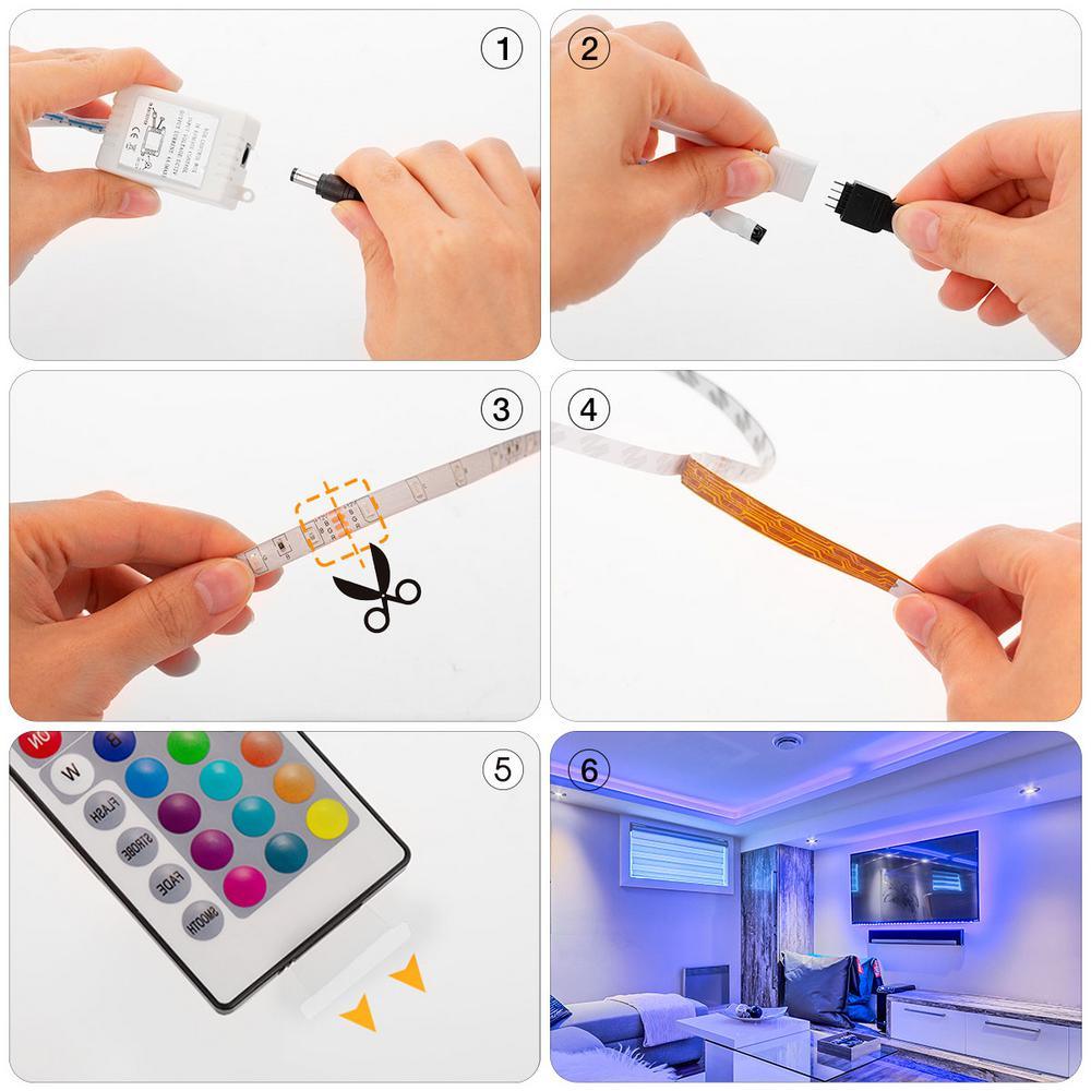 Simple installation, it can be install easily that you can carrying it convenient, just tear tape behind the strip light and stick it to wall or other surface