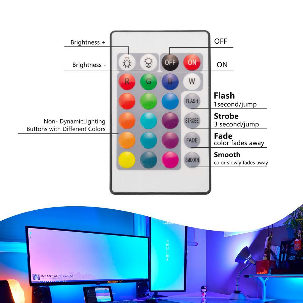 LED strip lighting is a great decorative solution for indoor or outdoor applications. Full-range brightness and color are controlled by a wireless remote with 24 keys. Adhesive backing for easy installation.