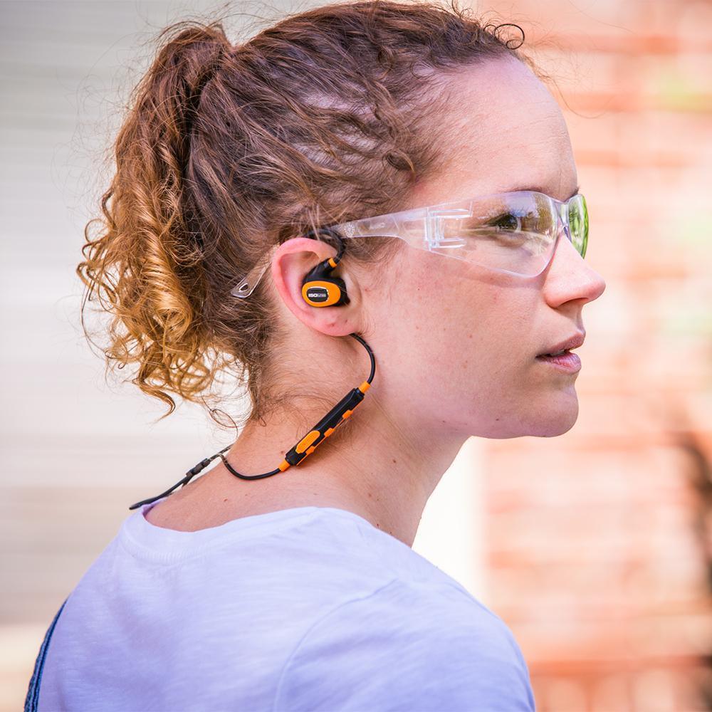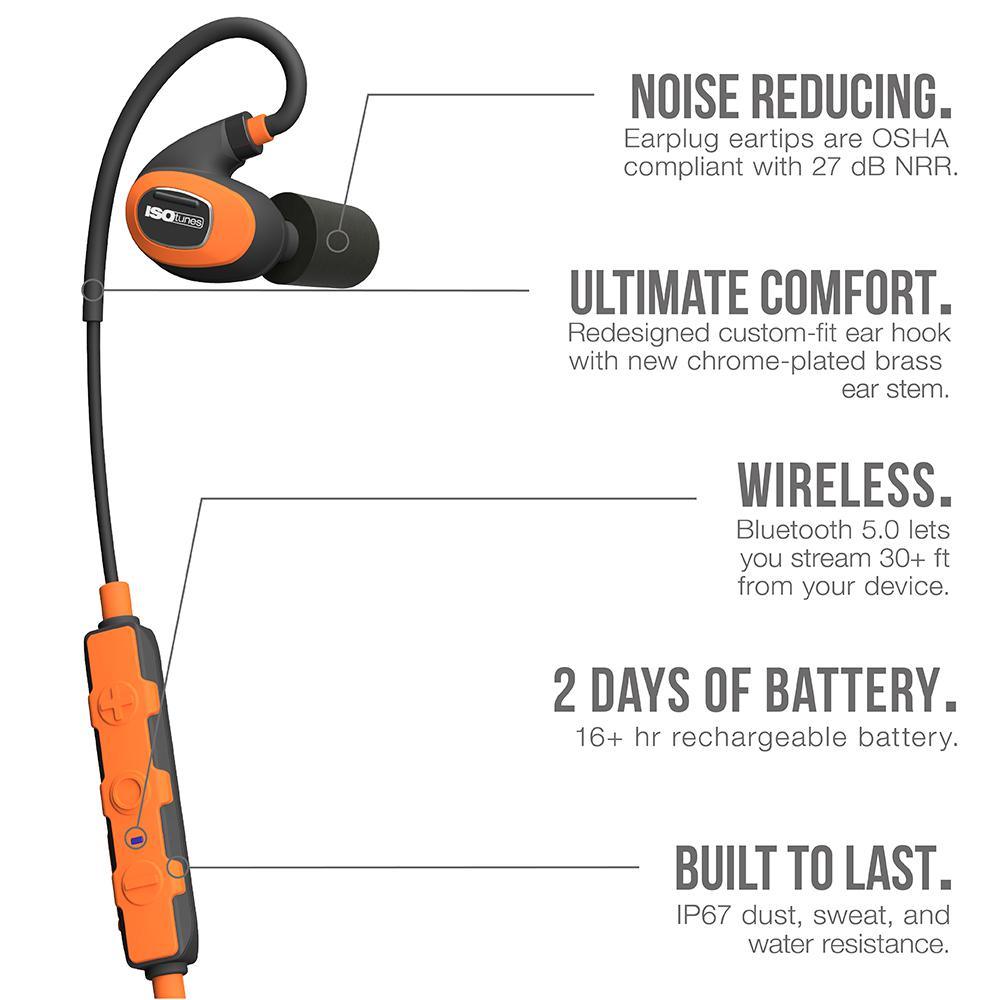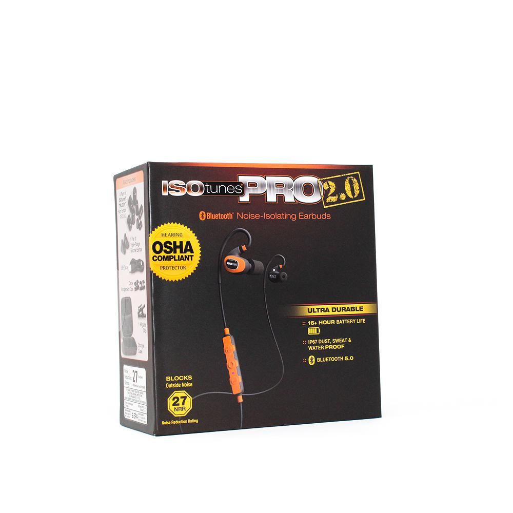 ISOtunes PRO 2.0 is an all-over upgrade of the award-winning PRO Bluetooth earplug line from ISOtunes. The PRO 2.0 is ultra-durable and designed for all-day use in the toughest, loudest environments by professional woodworkers, contractors, lawn maintenance professionals and anyone using power tools or other loud equipment. These wireless work headphones will protect your hearing while increasing your productivity and making your work more enjoyable. The PRO 2.0 features an ANSI-certified 27 decibel Noise Reduction Rating (NRR) in its proprietary TRILOGY memory foam eartips and is OSHA compliant for use in the workplace with its SafeMax volume limiting technology. Durability upgrades include chrome-plated brass ear stems, an IP67 dust, sweat and water proof rating, redesigned memory wire ear hooks, rip-resistant cables and heavy-duty controller. This product comes with 3 sets of foam eartips, 1-pair of silicone triple-flange eartips, a micro-USB charging cable and a protective travel case.