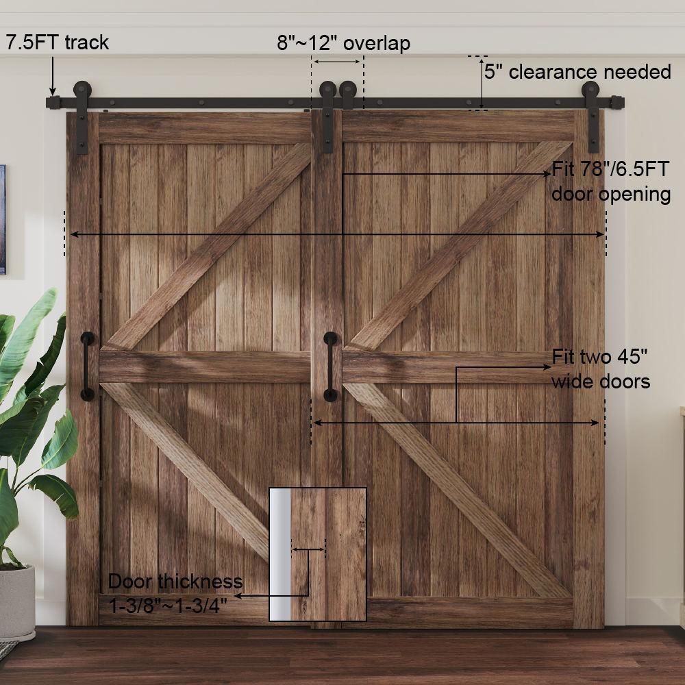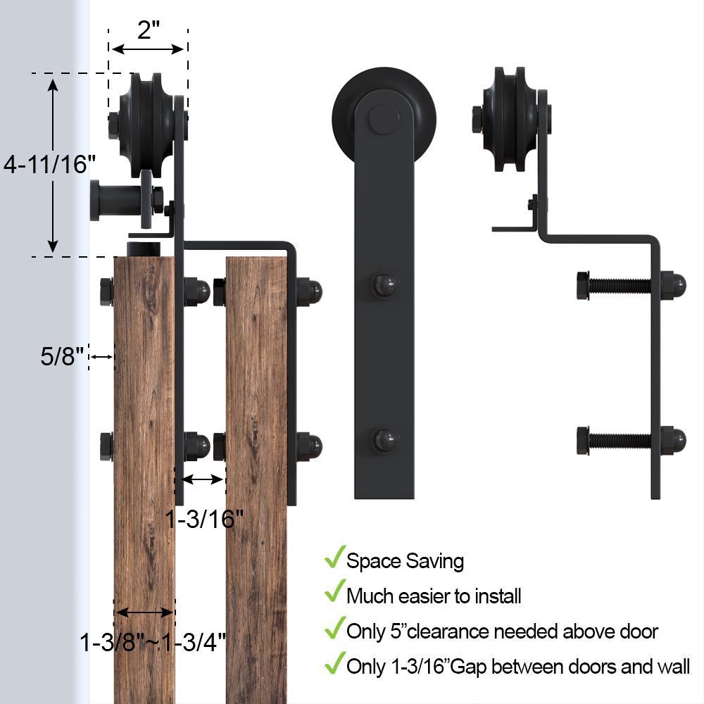 WINSOON is the leading manufacturer of sliding barn door hardware. Craftsmanship, excellence and innovation are our primary pursuits. We enjoy the working with raw materials to make them into something extraordinary. Trustful quality and workmanship is what you can expect when you choose WINSOON. We lead the way in sliding barn door hardware and we invite you to create something unique. Smooth rolling, balanced hangers ensure that all wheels carry weight evenly for the smoothest operation. This 7.5 ft. single track bypass compared with the previous bypass products, it saves more space and requires less distance from the top of the door to the ceiling. At least 6 in. of space can be installed in your home. Because the wheels are staggered, this will result in an overlap size of about 8 in. - 12 in. If you are installing two 45 in. doors, then your door opening length should be perfect at 78 in.